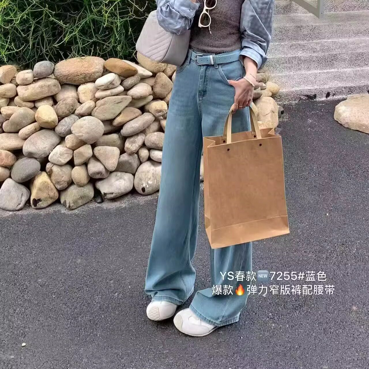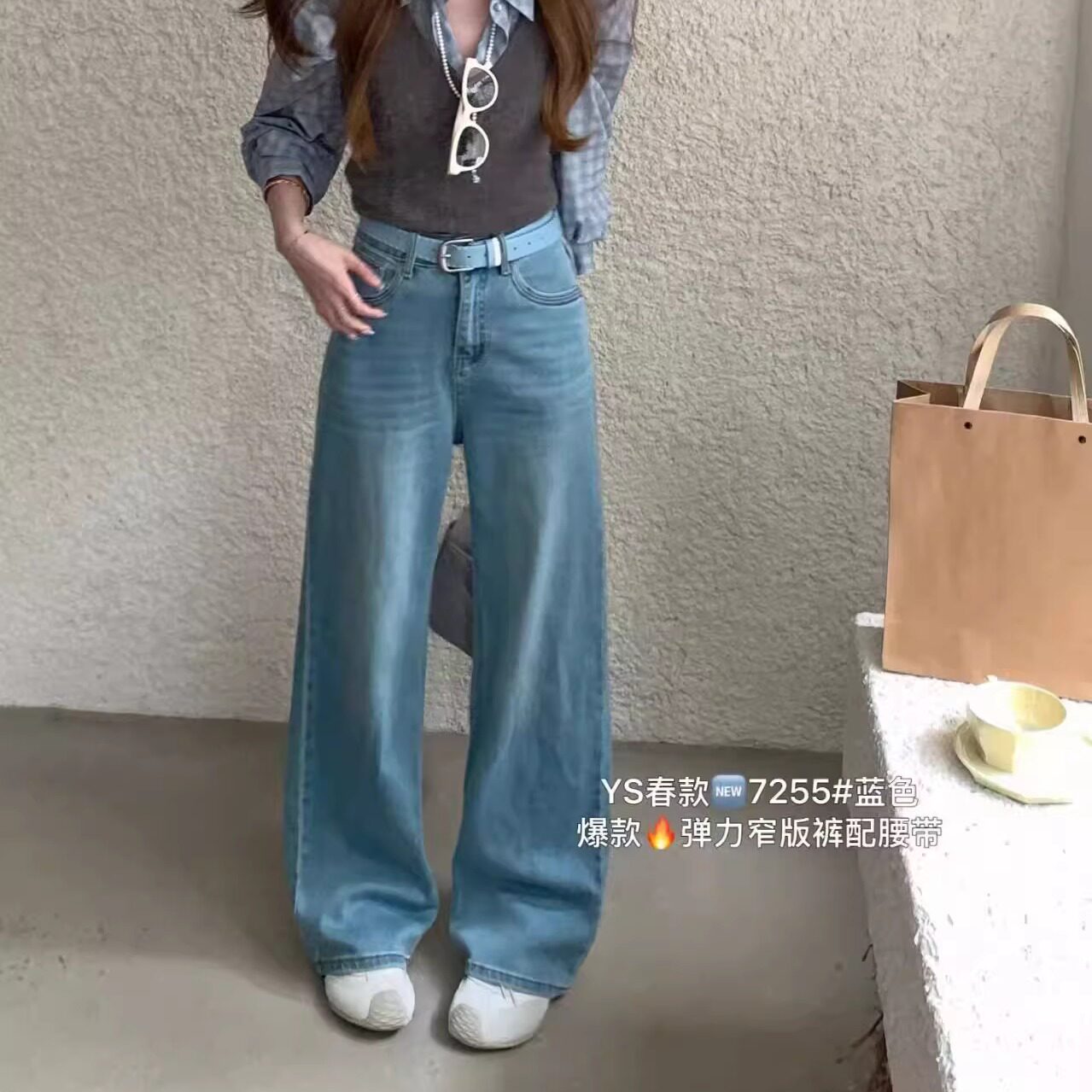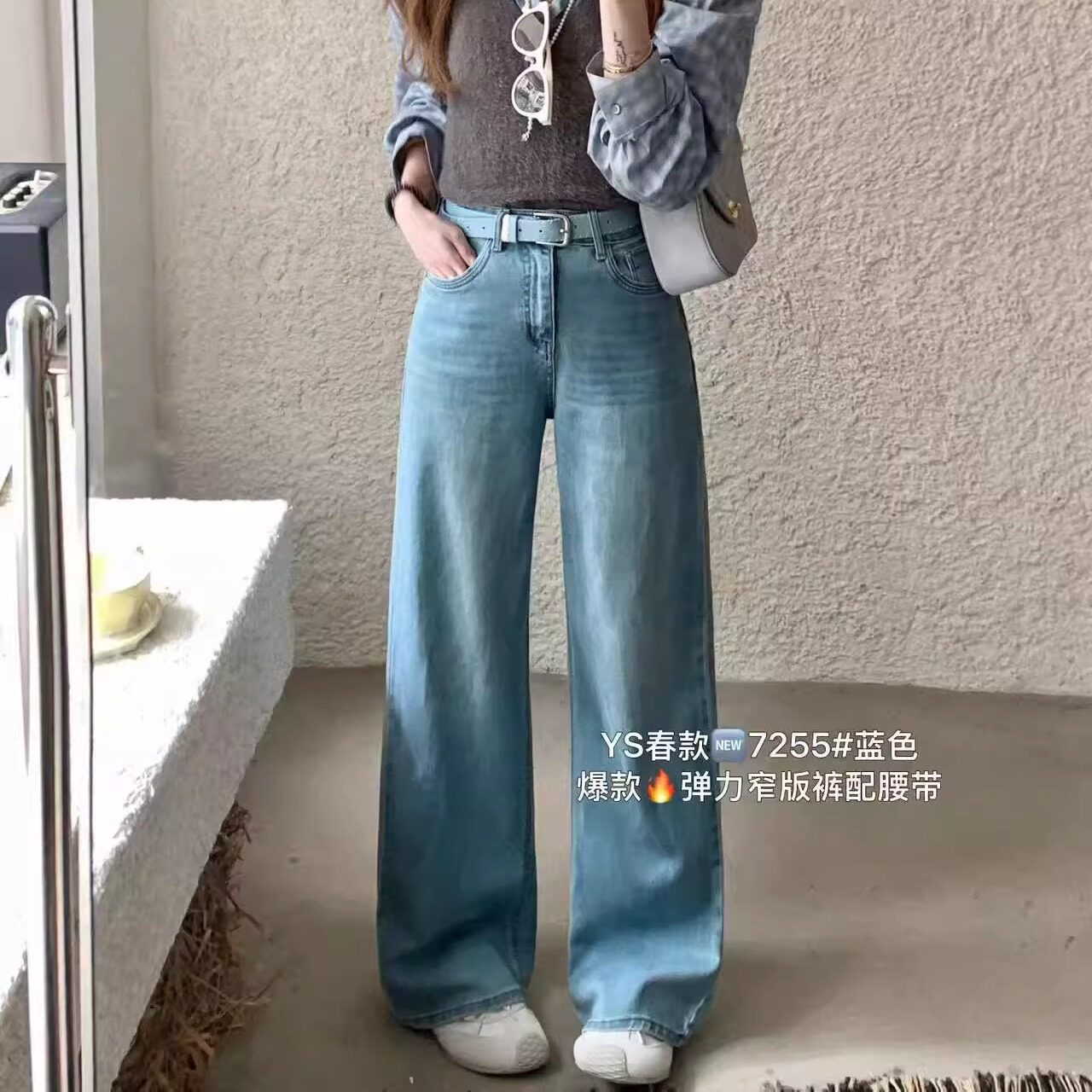 阔腿牛仔裤 女2026春秋高腰显瘦弹力窄版 子7255 拖地直筒裤 韩标元