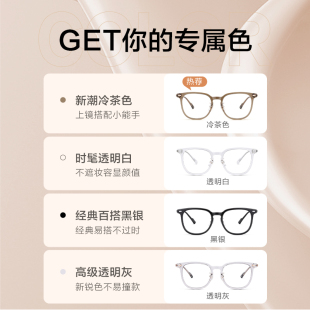 普莱斯防辐射抗蓝光疲劳近视眼镜女款 可配度数素颜平光冷茶眼睛框
