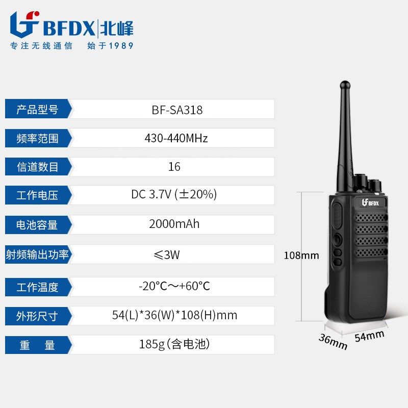 BFDX北峰手持对讲机SA318双守候双发射带手电酒店KTV手台对讲机