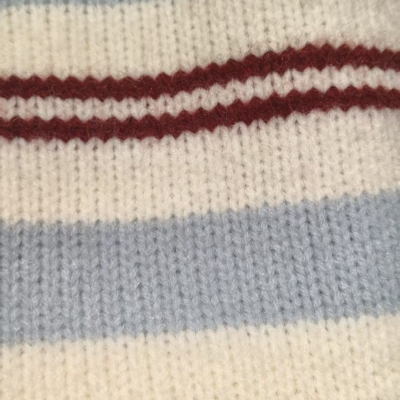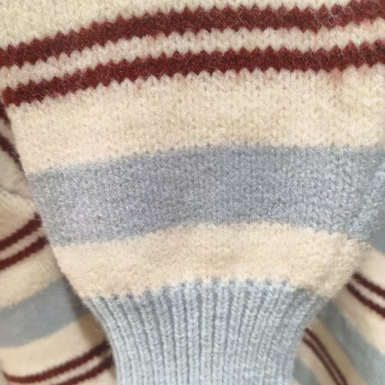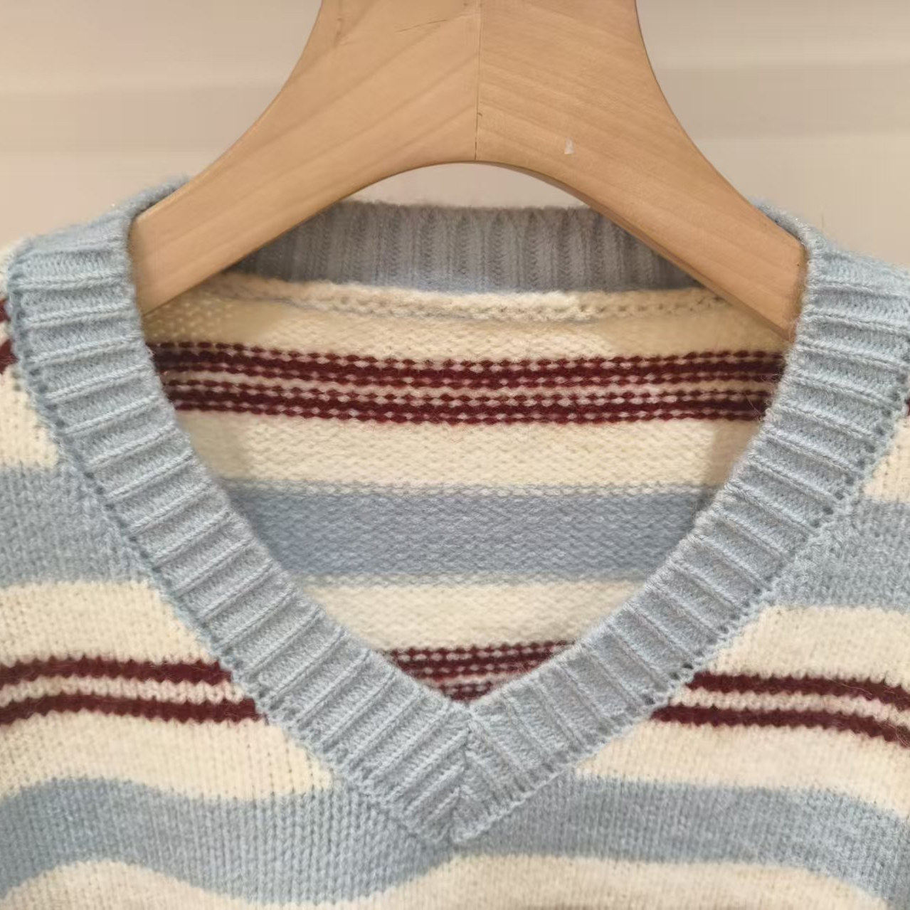 韩代撞色条纹V领针织衫 休闲毛衣 女2025新款