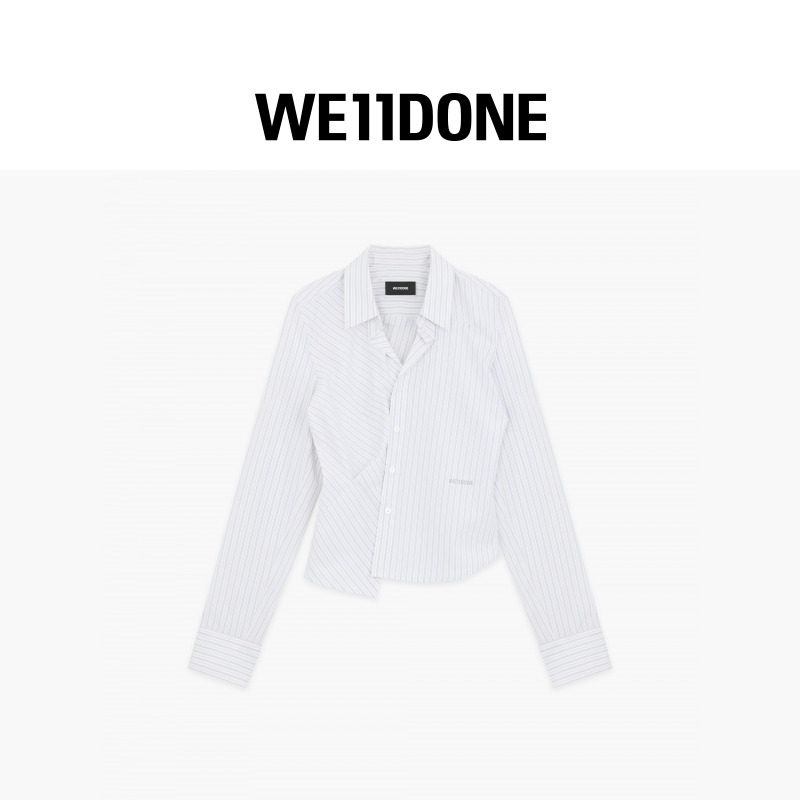 设计感休闲个性 女士条纹不对称衬衫 新品 WE11DONE26春季