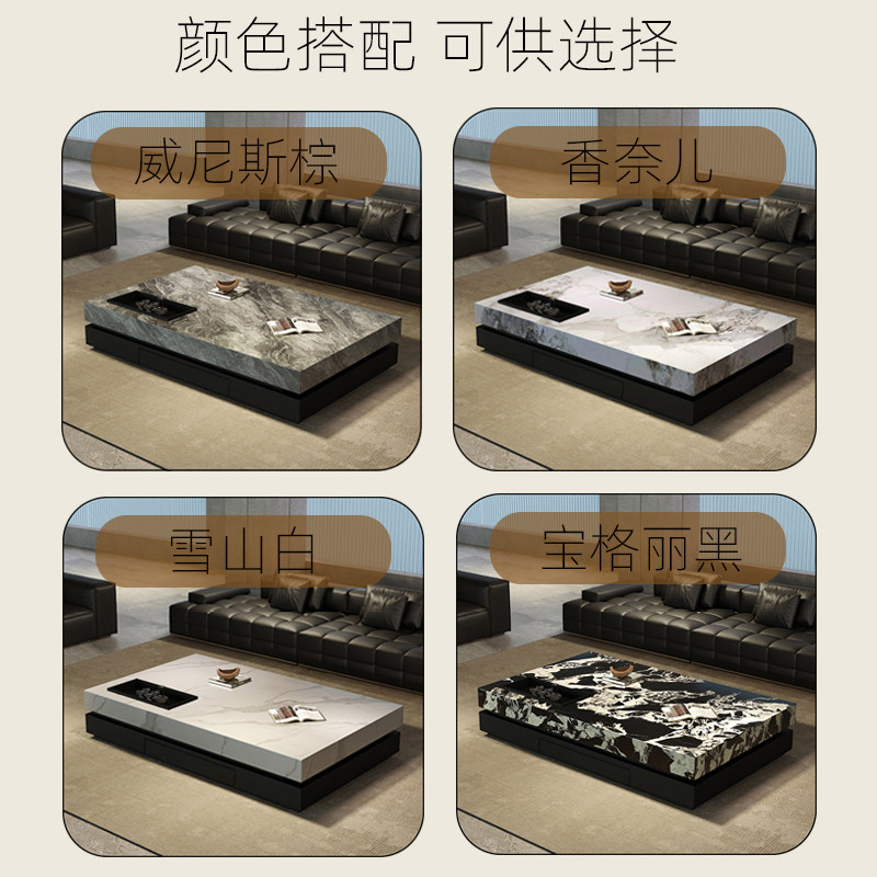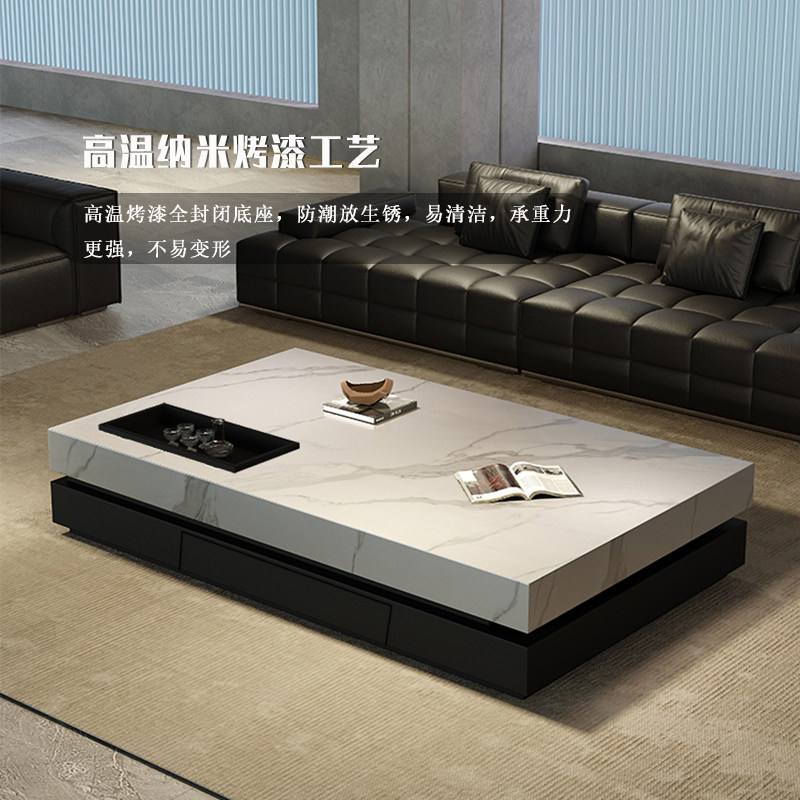 现代极简岩板茶几意式 大尺寸轻奢简约客厅家用高端小户型方形茶几