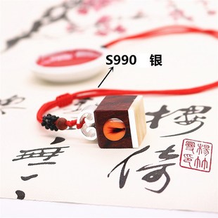 极速DIY自制S9k90银饰胎毛吊坠印章小叶紫檀黑檀脐带章婴儿宝宝纪