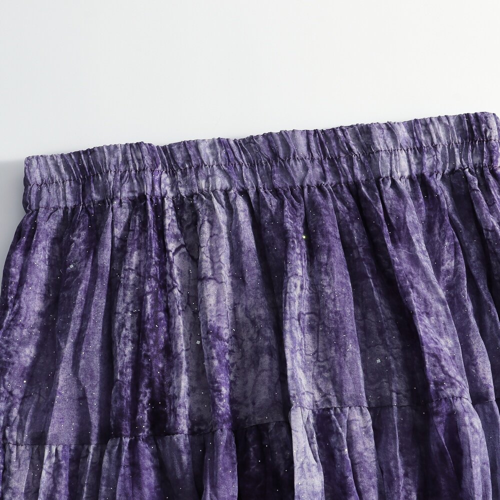 AOSER时尚 波点半身裙印花女8812 印染高腰气质百搭紫色系裙子时尚