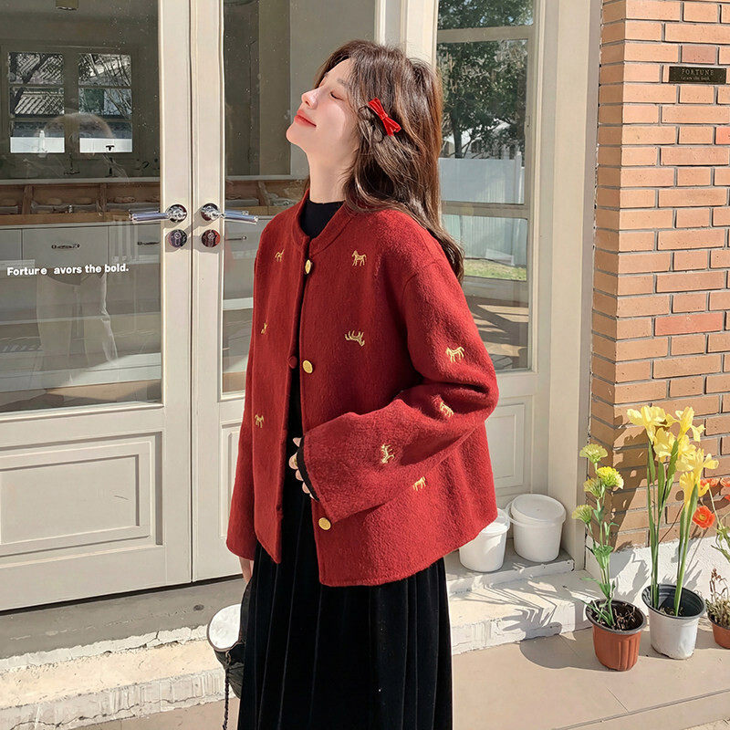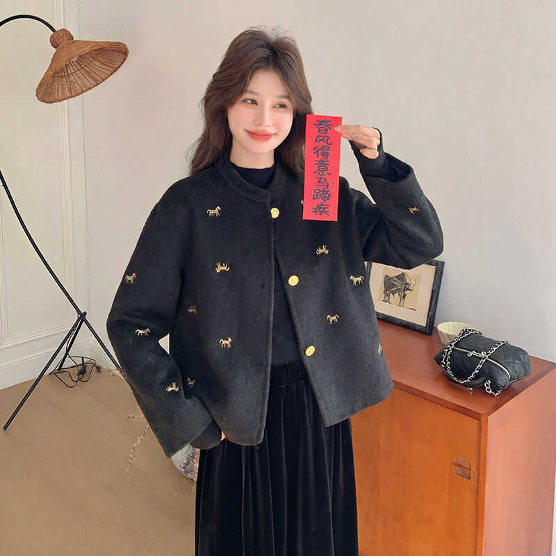 现货主推款 k328 好数据已测重工刺绣马到成功双面羊毛呢外套p215