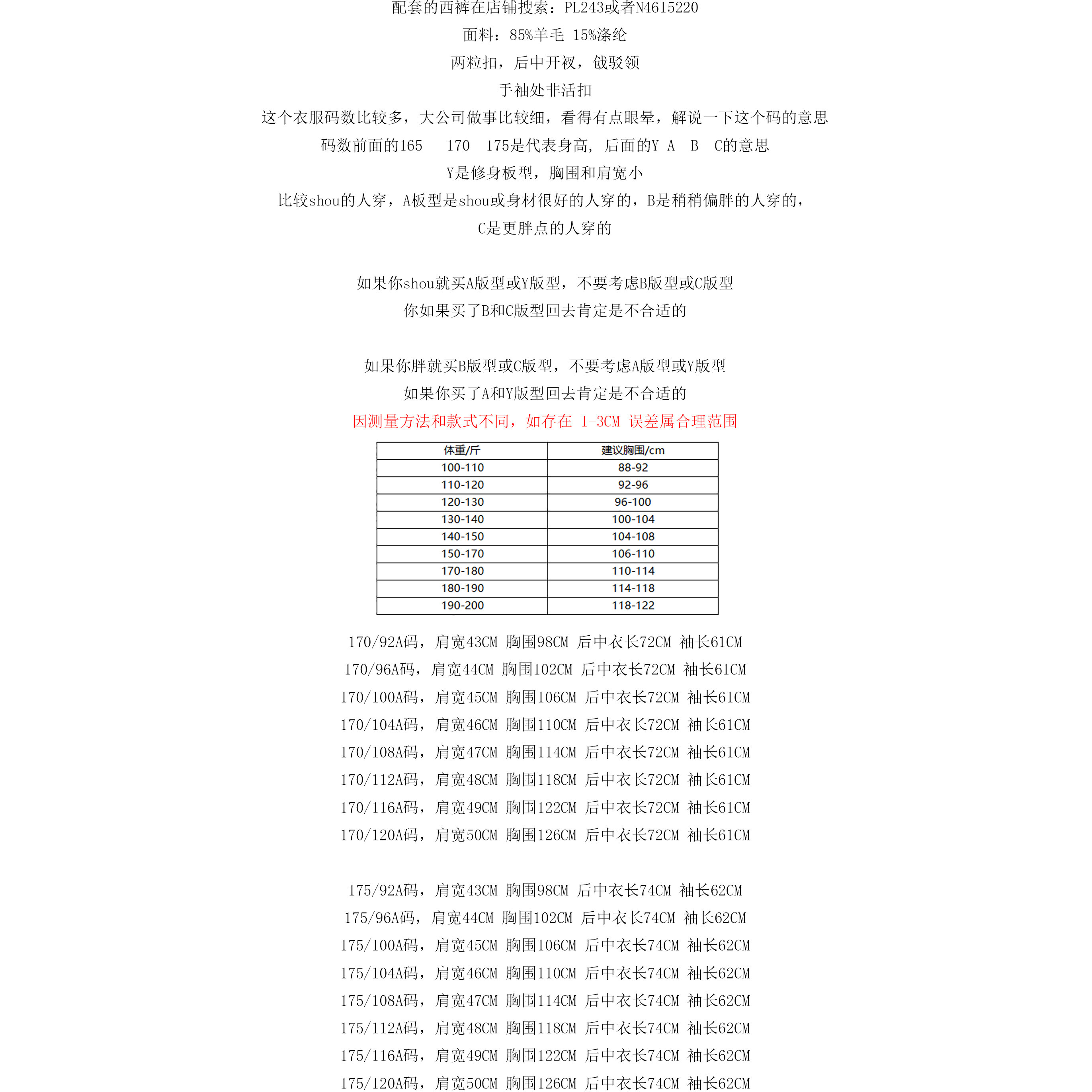 外套 羊毛两粒扣后中开衩商务西装 N4615220 西服 PL34皮春秋男式
