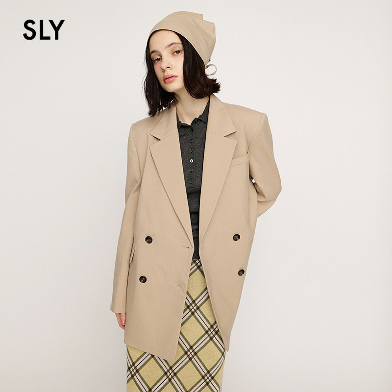 0811 外套030JSR30 SLY2026早春新品 通勤慵懒风廓形双排扣宽松西装