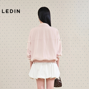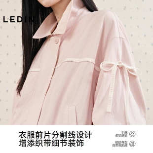 乐町甜美蝴蝶结蕾丝织带设计休闲外套26年春夏新翻领短款 宽松夹克