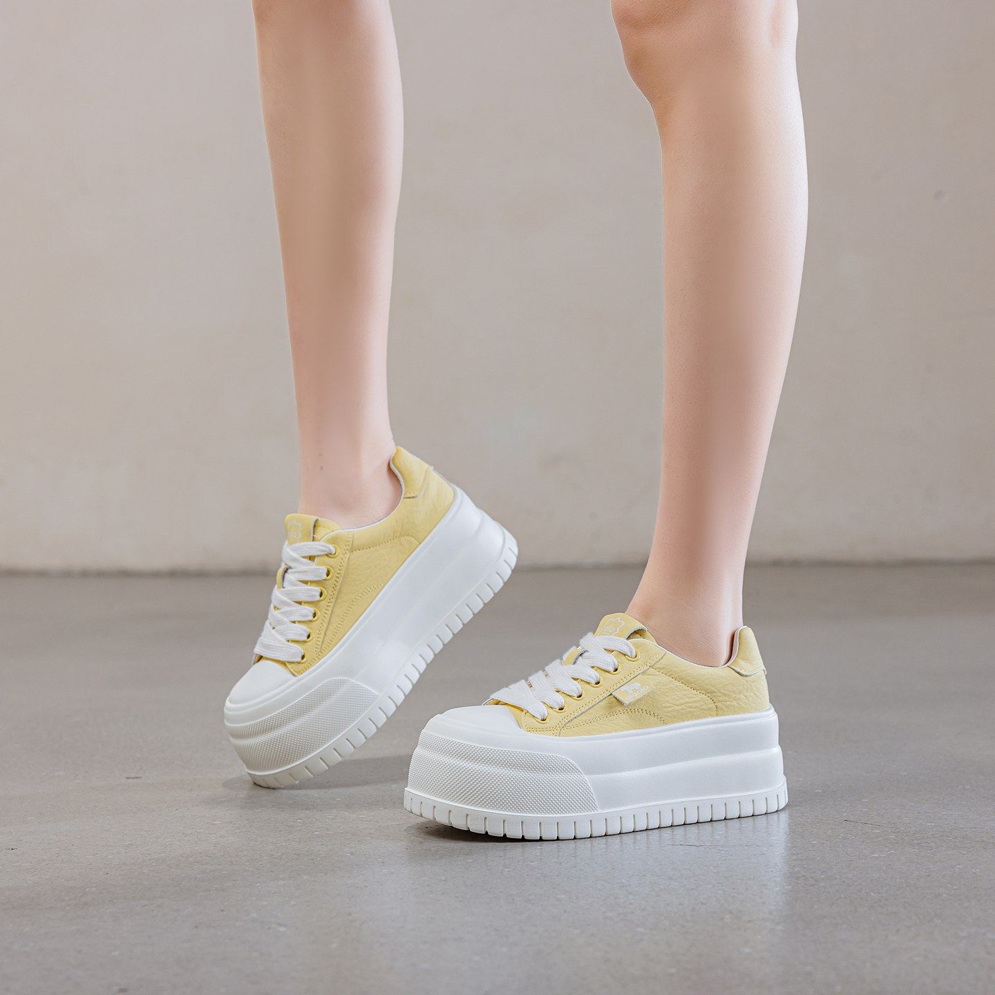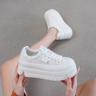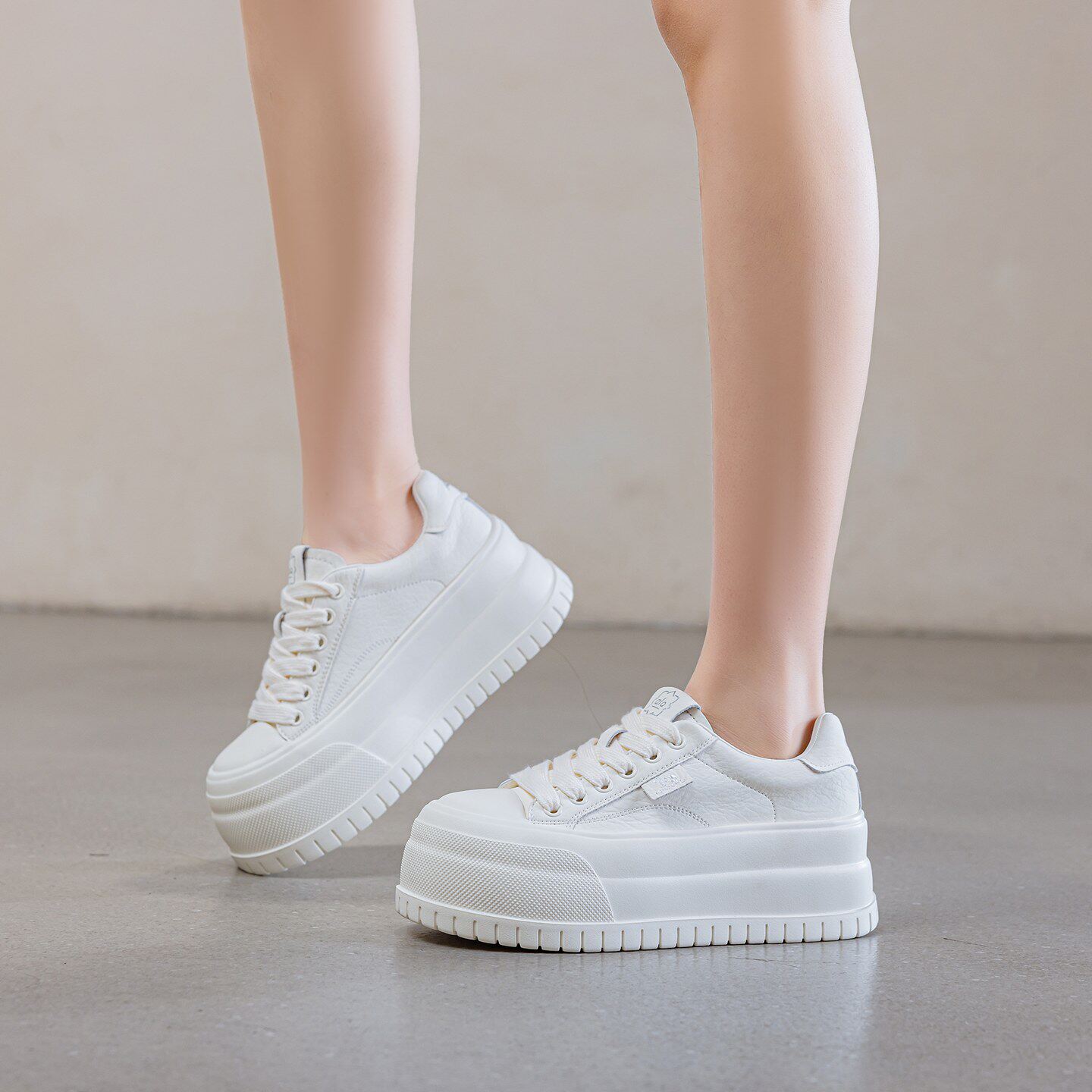 新款 2026春季 女超轻运动轻便休闲板鞋 真皮圆头松糕厚底增高小白鞋