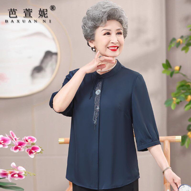 短袖 两件套装 T恤上衣加肥加大码 奶奶夏季 中老年人女装 胖妈妈夏装