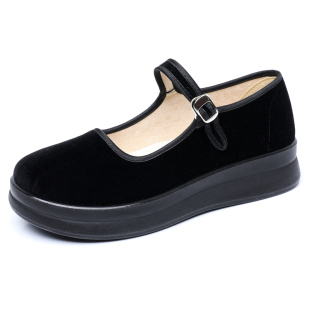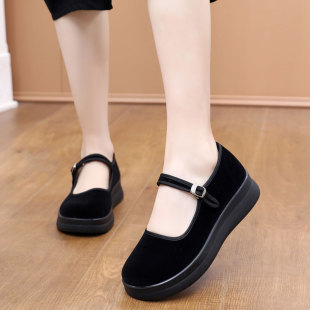 舒适不累脚上班鞋 老北京布鞋 黑色厚底妈妈鞋 防滑软底工作鞋 女新款