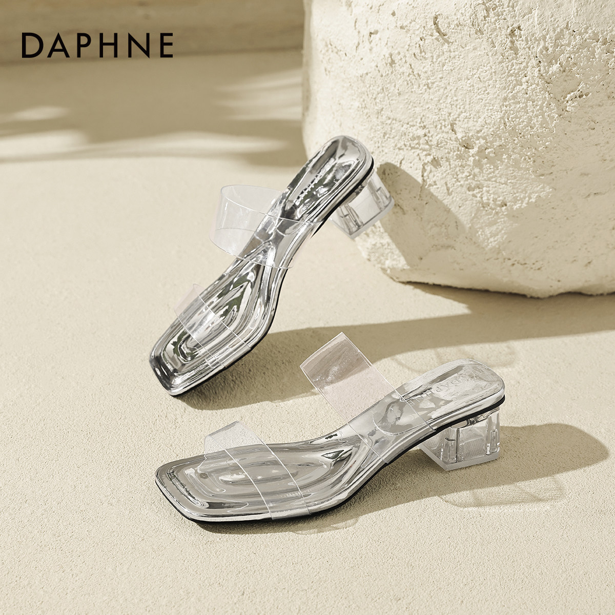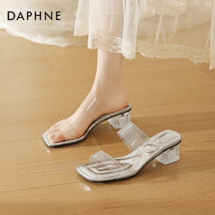 外穿绝美一字带高跟气质凉鞋 夏季 配裙子 2026新款 达芙妮透明凉拖鞋