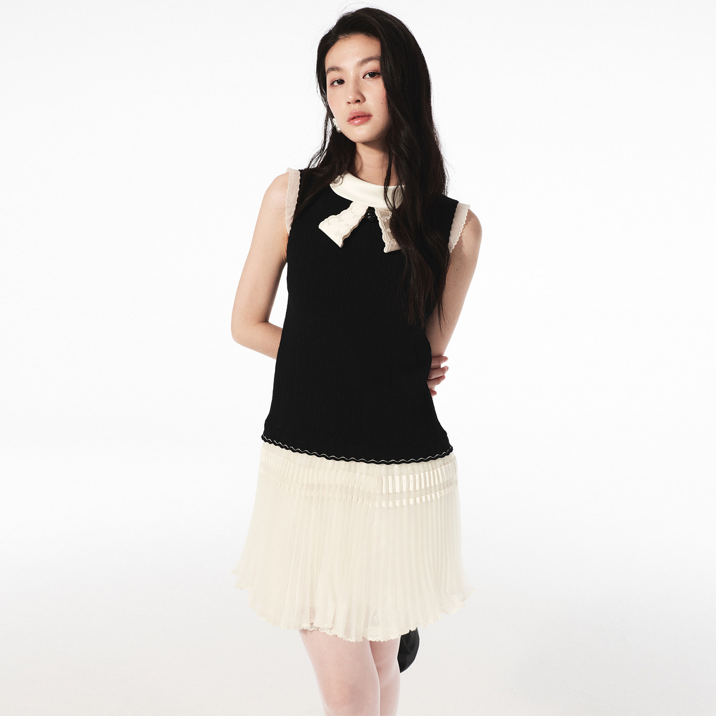 撞色绣花拼接下摆针织背心连衣裙女 时尚 lefame拉飞姆2026夏季 新款