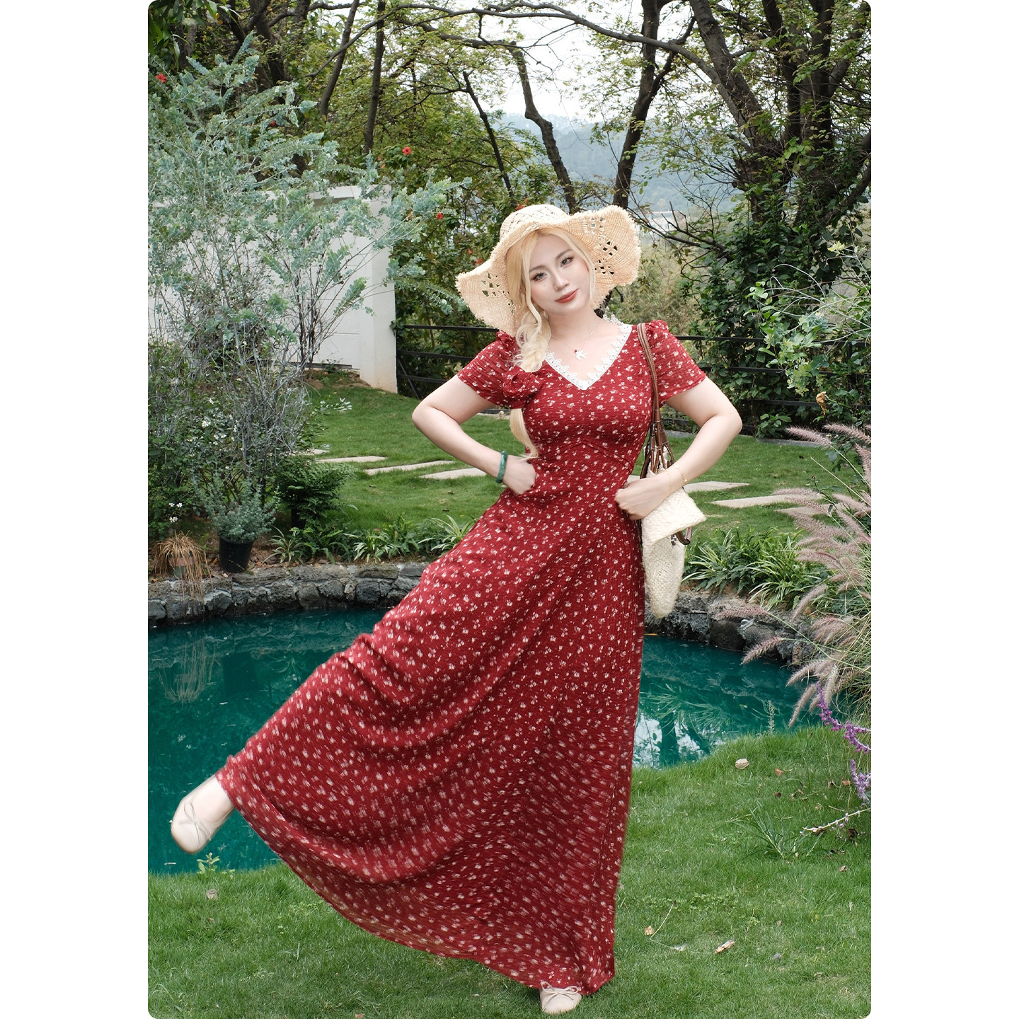 碎花短袖 法式 连衣裙夏度假风明媚收腰大长裙 夏日之约 糯米子