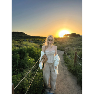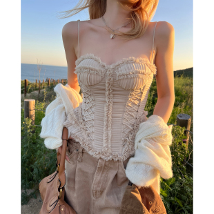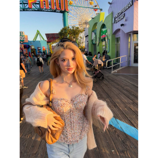 Lin rm重工压褶鱼骨抹胸碎花雪纺 花骨柔纱 带胸垫 Xinlei