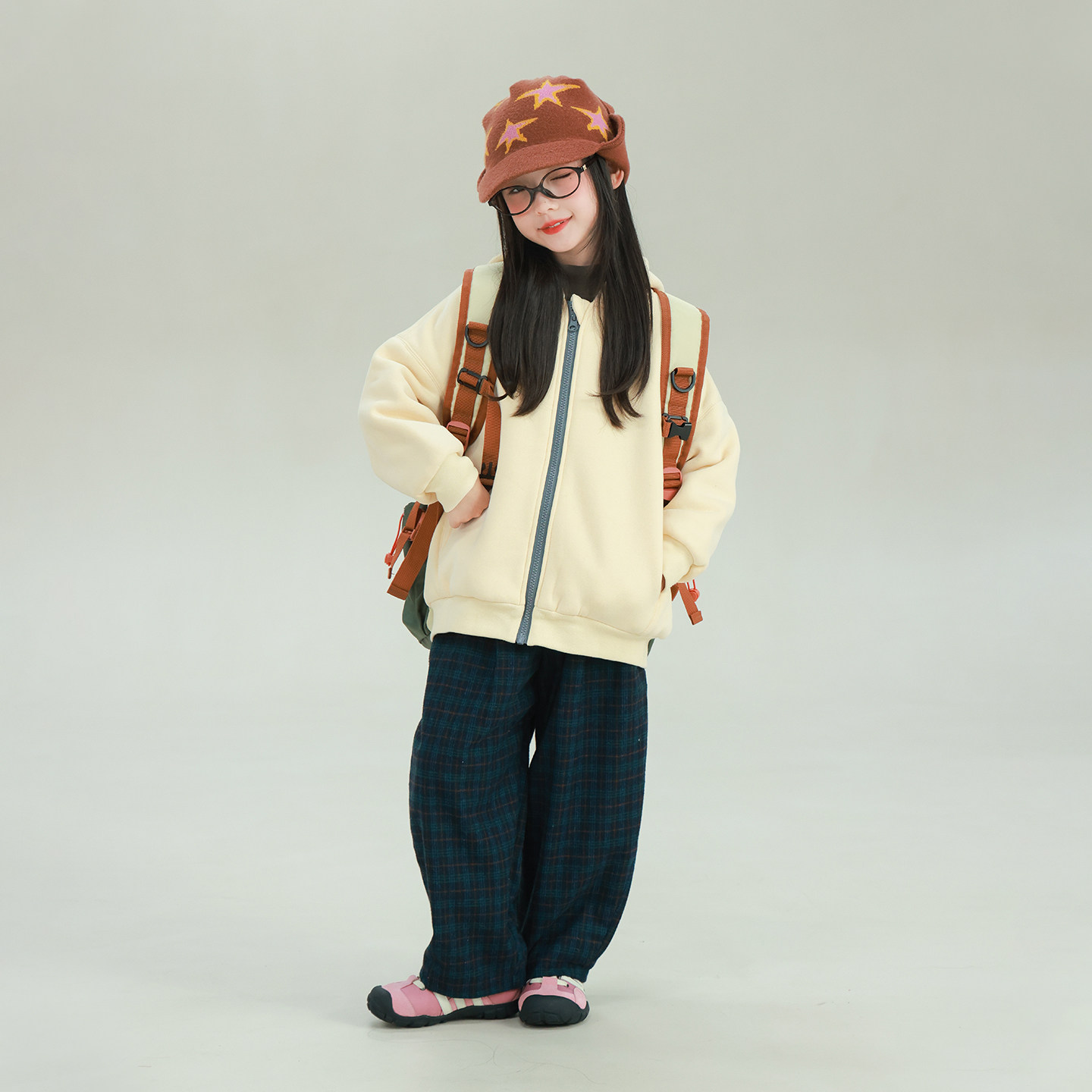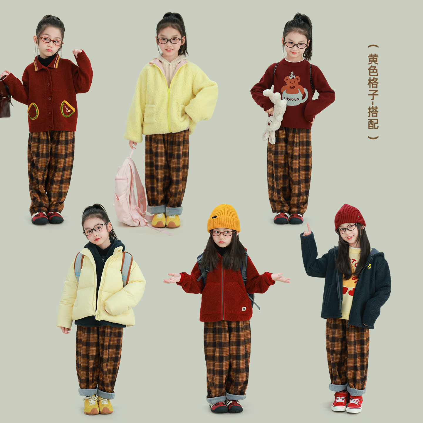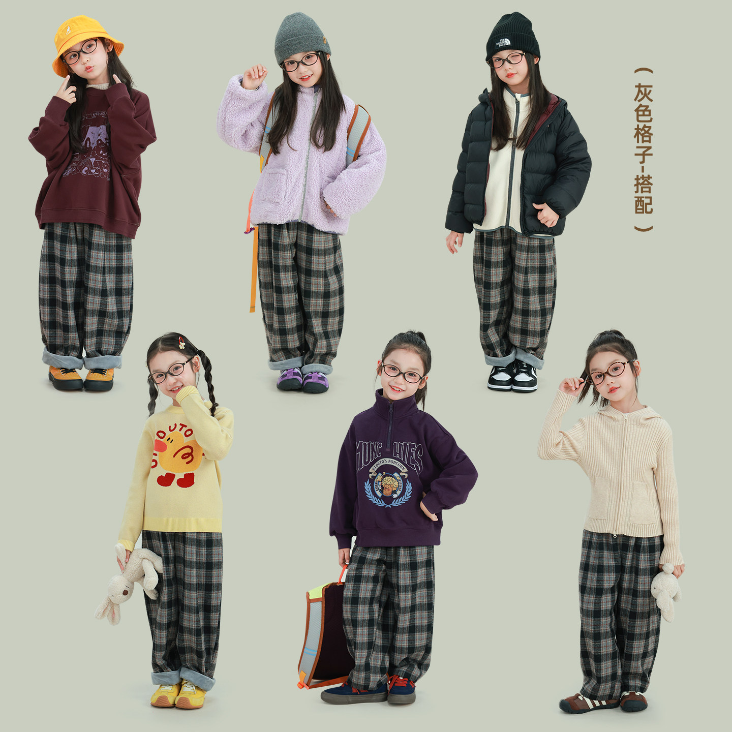 宝儿百搭休闲宽松保暖厚实裤 新款 子 冬季 大耳象女童格子加绒休闲裤