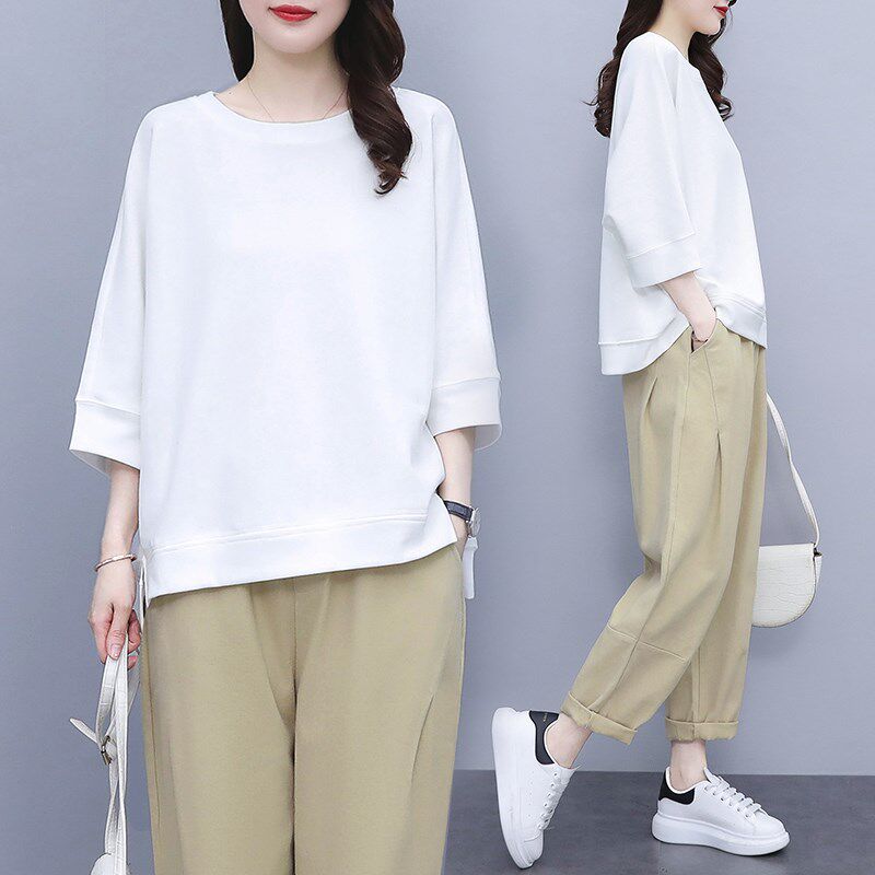 夏装 女士夏季 搭配一整套微胖显瘦遮肉职业 休闲时尚 胖妹妹显瘦套装