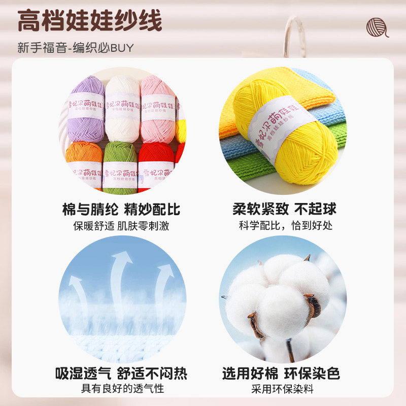 雪妃尔萌娃娃4股毛线四股牛奶棉手工编织diy钩针精梳棉萌四毛线团