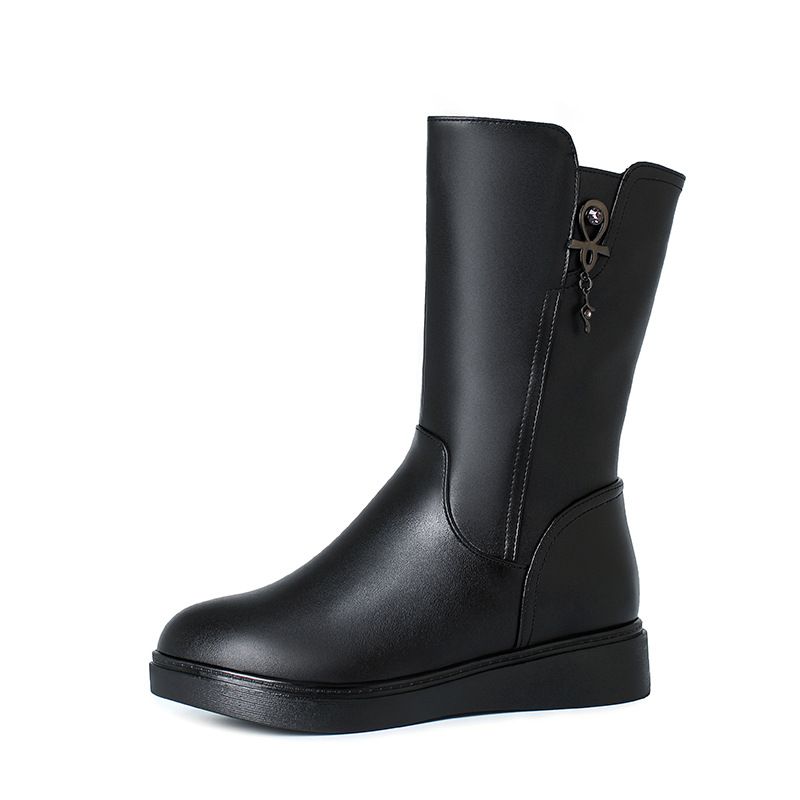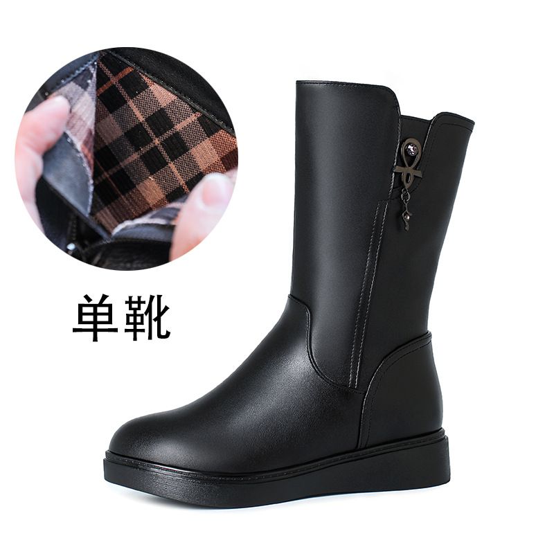 卢昱晓同款 TATA他她靴子牛皮烟筒靴加绒厚底切尔西靴短靴7OL44DD5