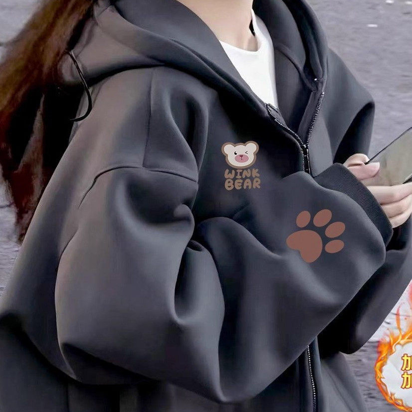 拉链加绒连帽上衣外套ins 宽松潮ins春秋冬季 2025小众新款 百搭韩版