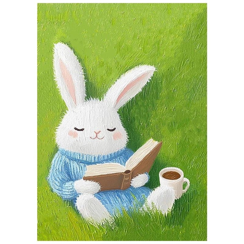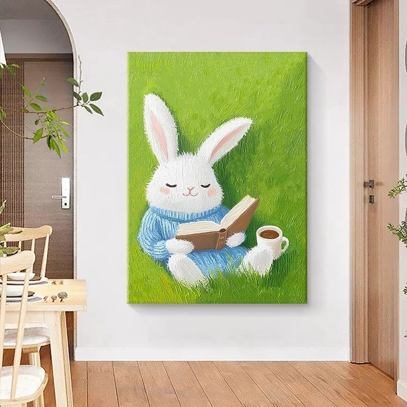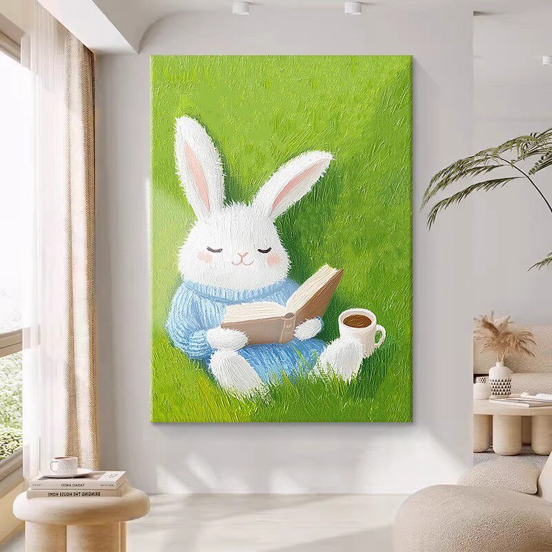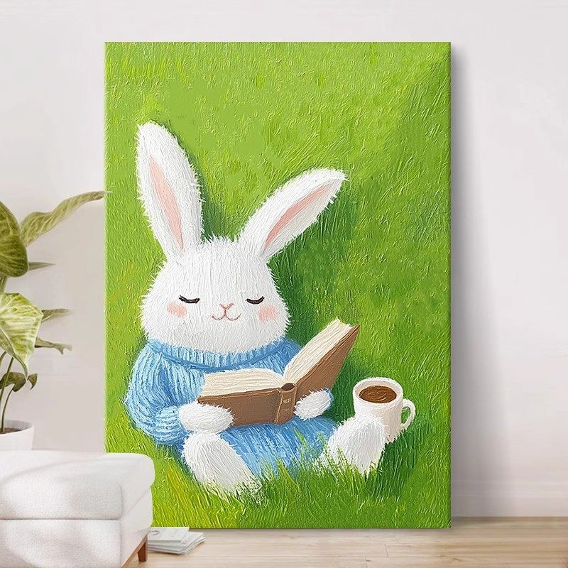 可爱兔子装 饰画成品仿油画风景动物小清新治愈系儿童房卧室摆挂画