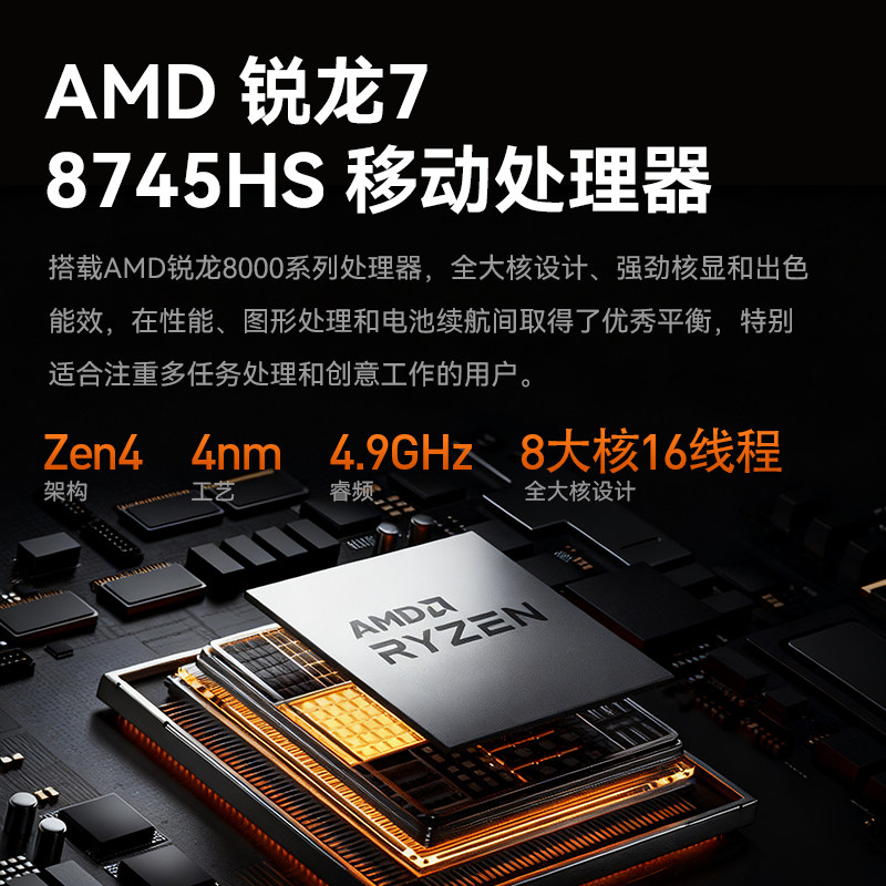 吾空凌云A14e锐龙版 8745HS高性能处理器轻薄本高色域护眼屏长续航轻薄笔记本电脑