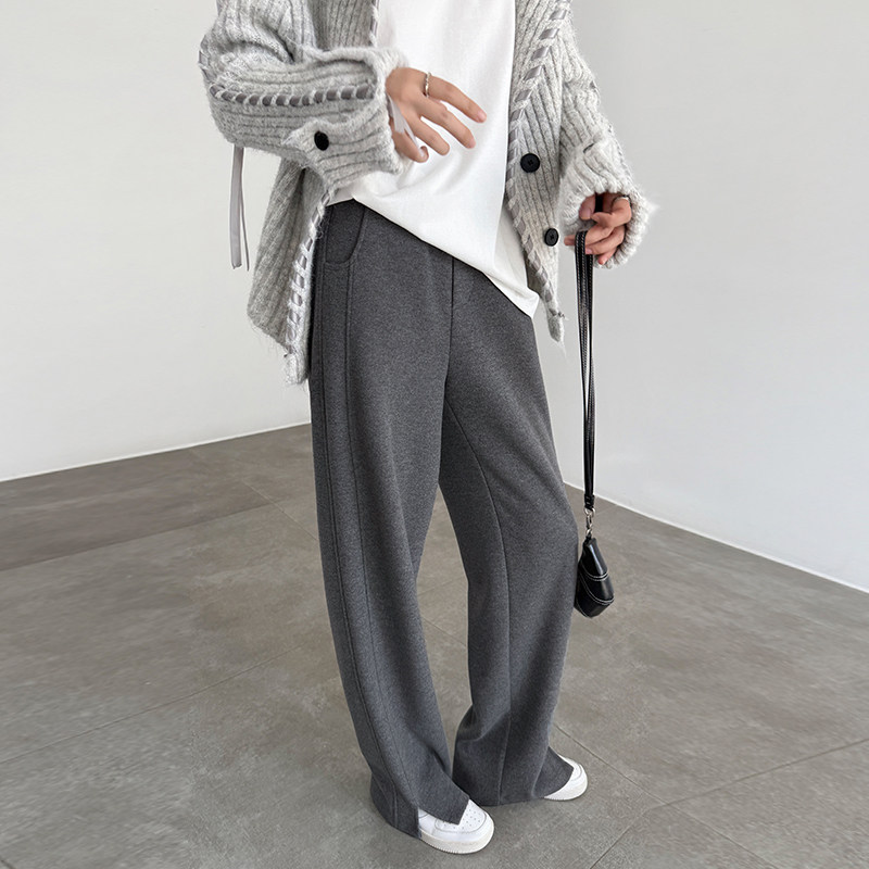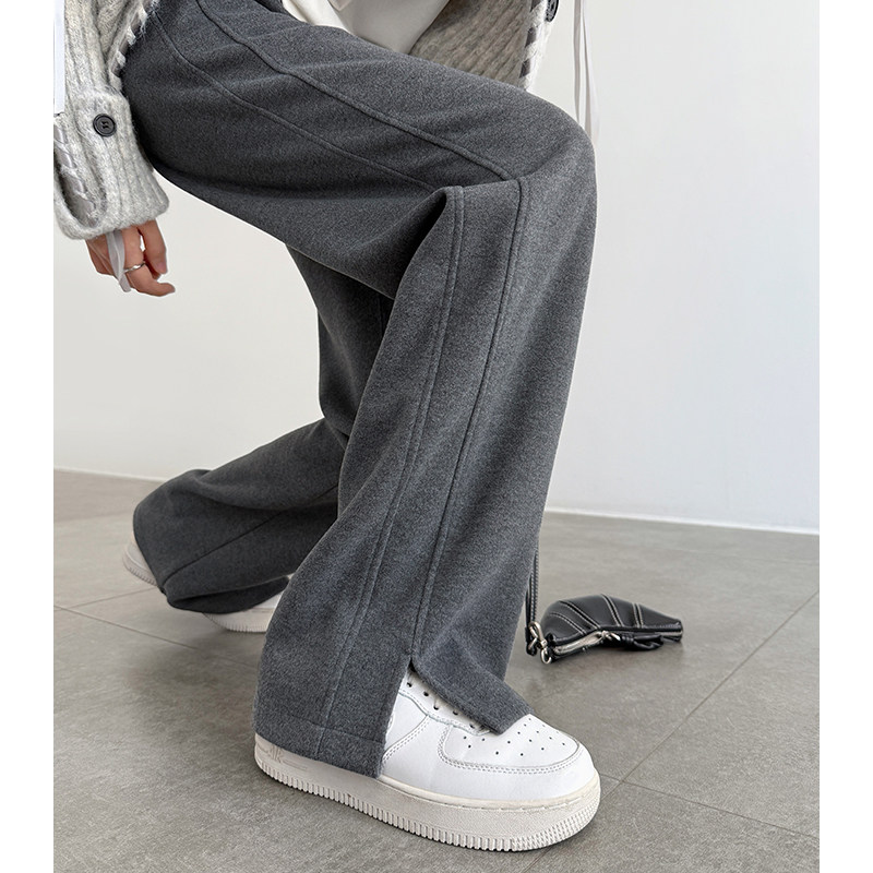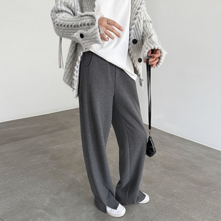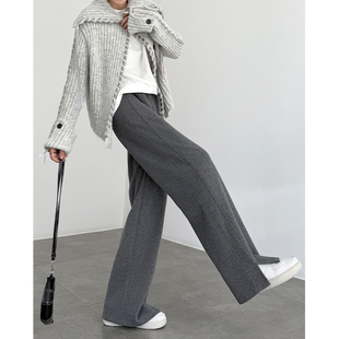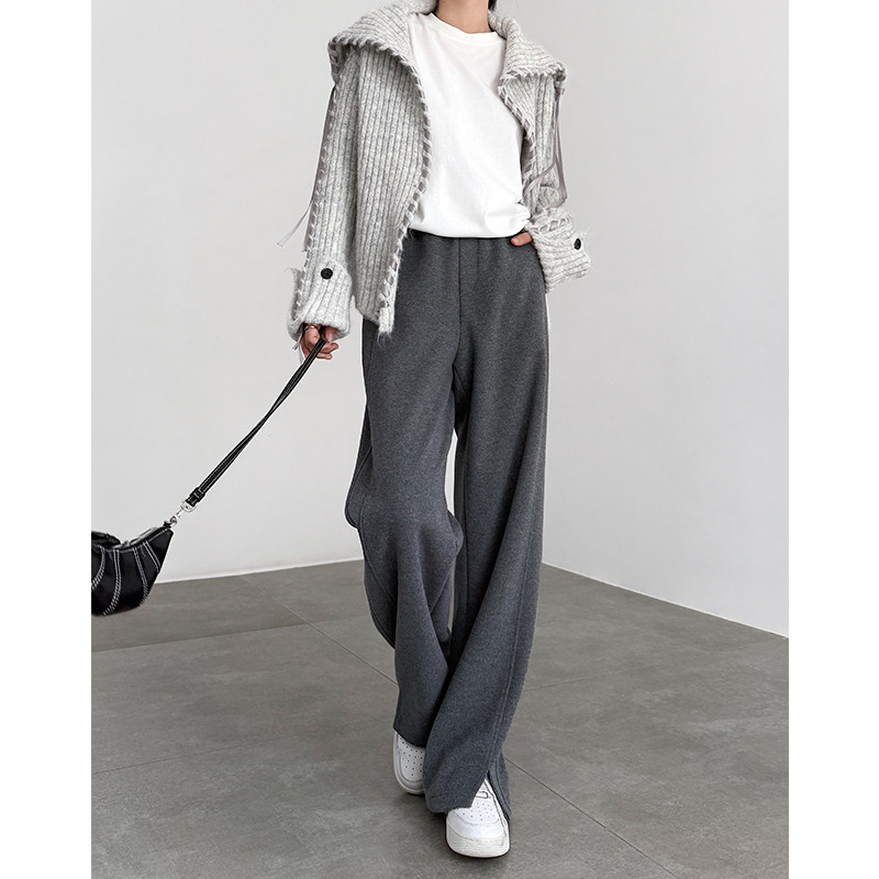 醋酸羊毛阔腿裤 灰色加绒裤 毛呢加厚开叉直筒窄版 2025新款 子女冬季
