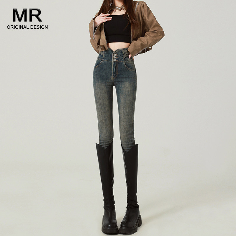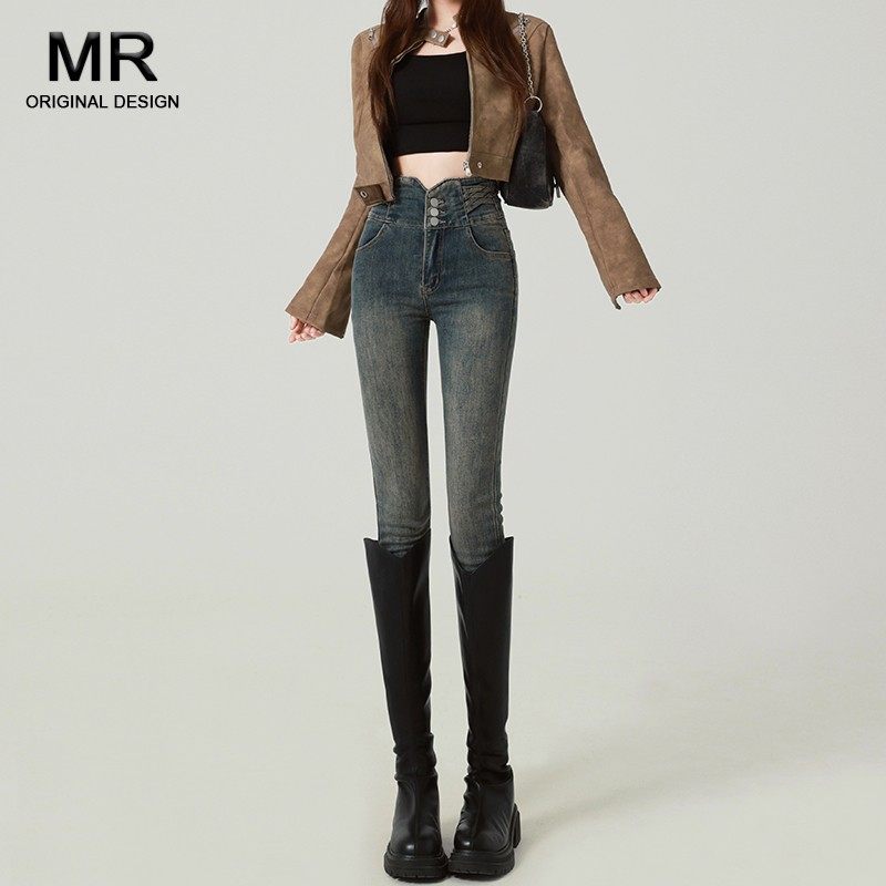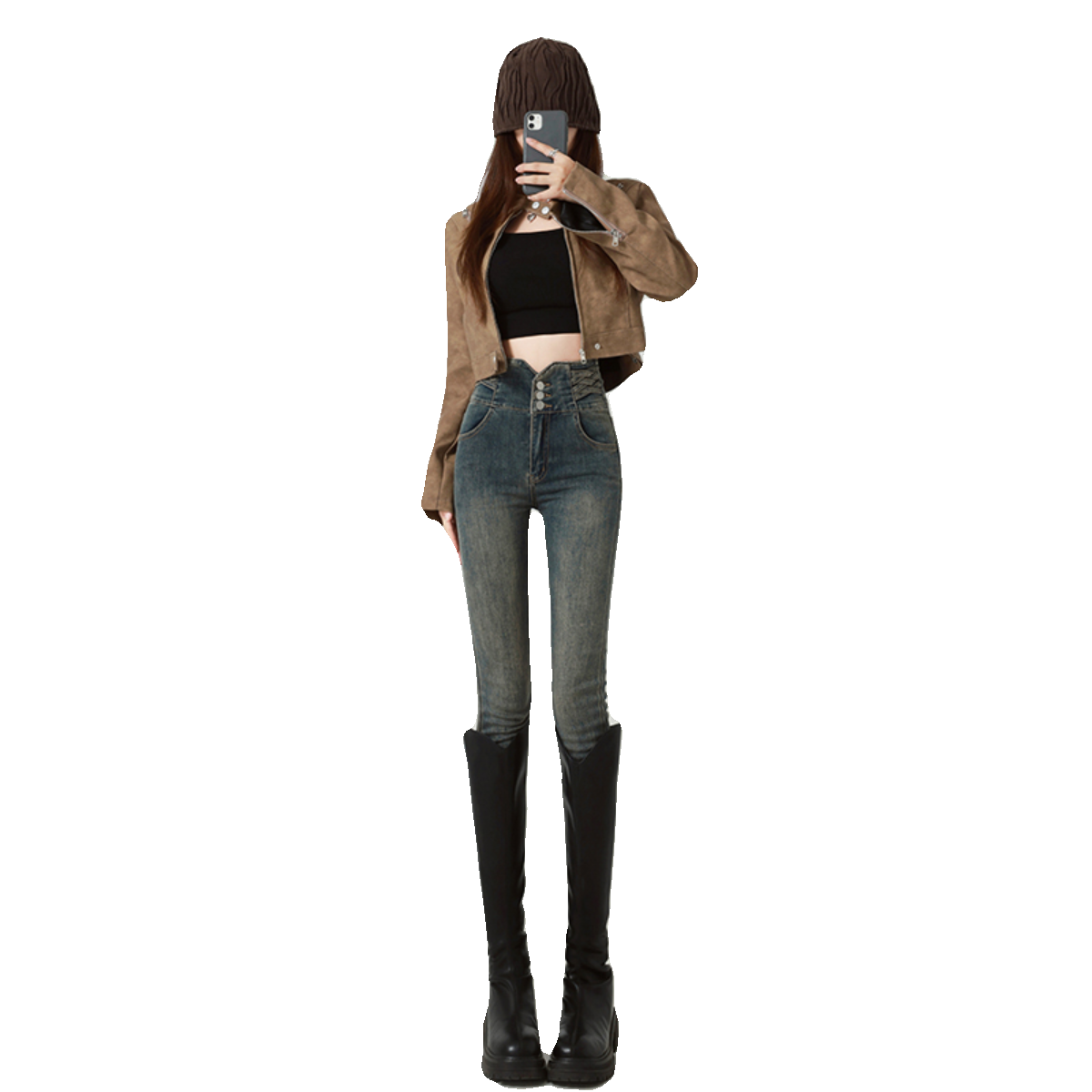 显瘦铅笔裤 高腰紧身牛仔裤 小脚裤 设计感修身 子 女加绒2025秋冬新款
