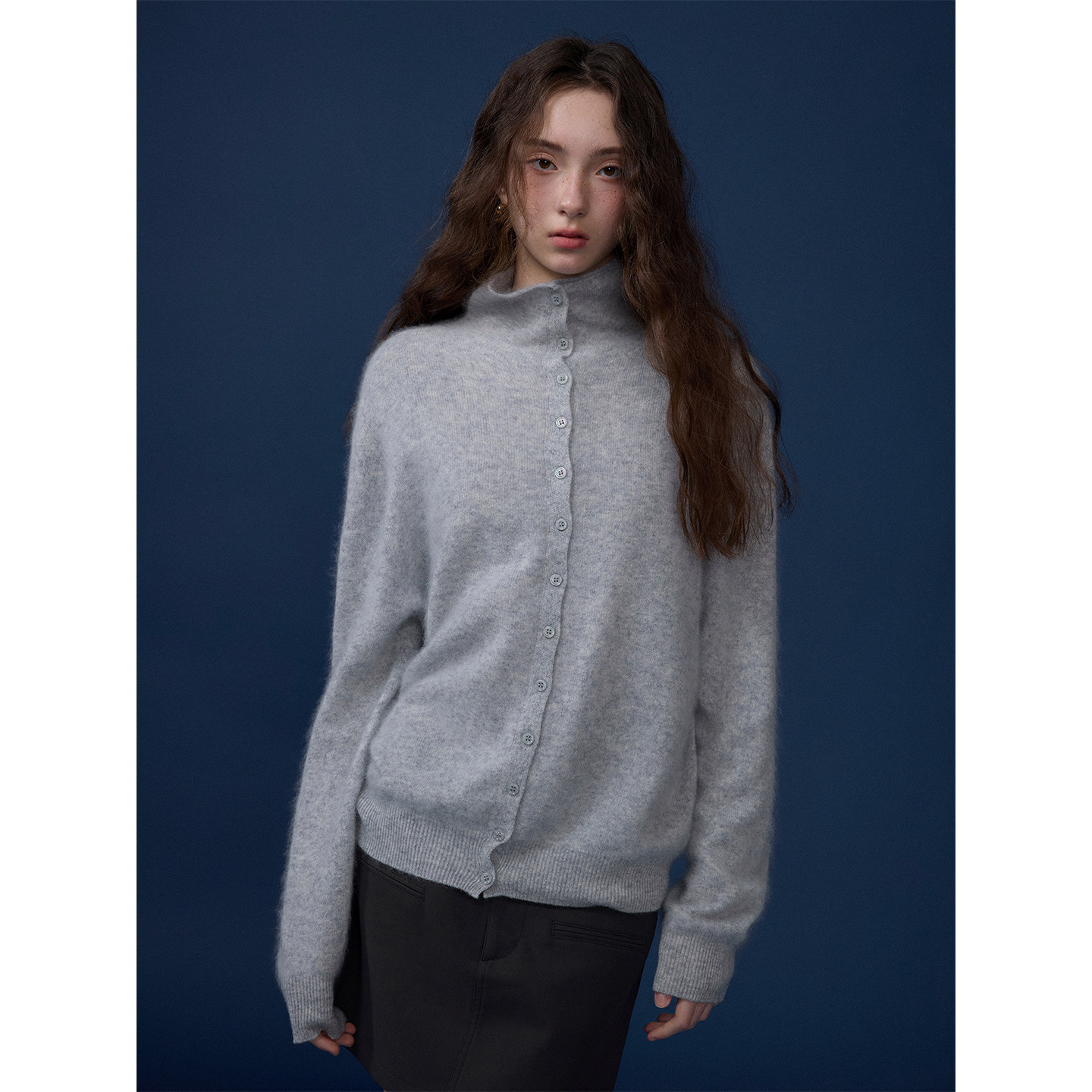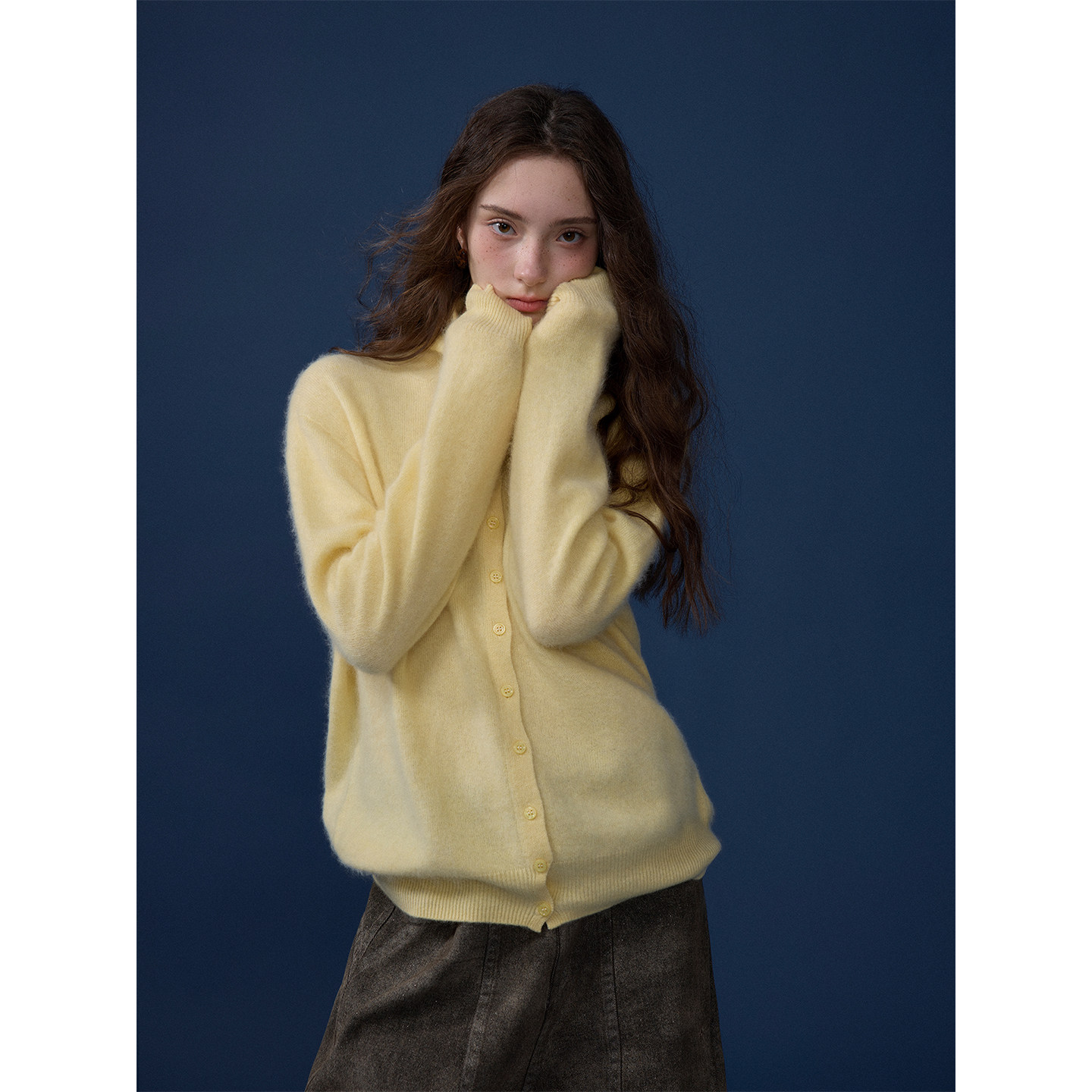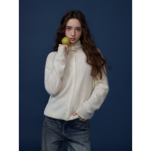 猫酱紫泡芙貉子毛领90白鸭绒羽绒服女秋冬软糯毛衣开衫