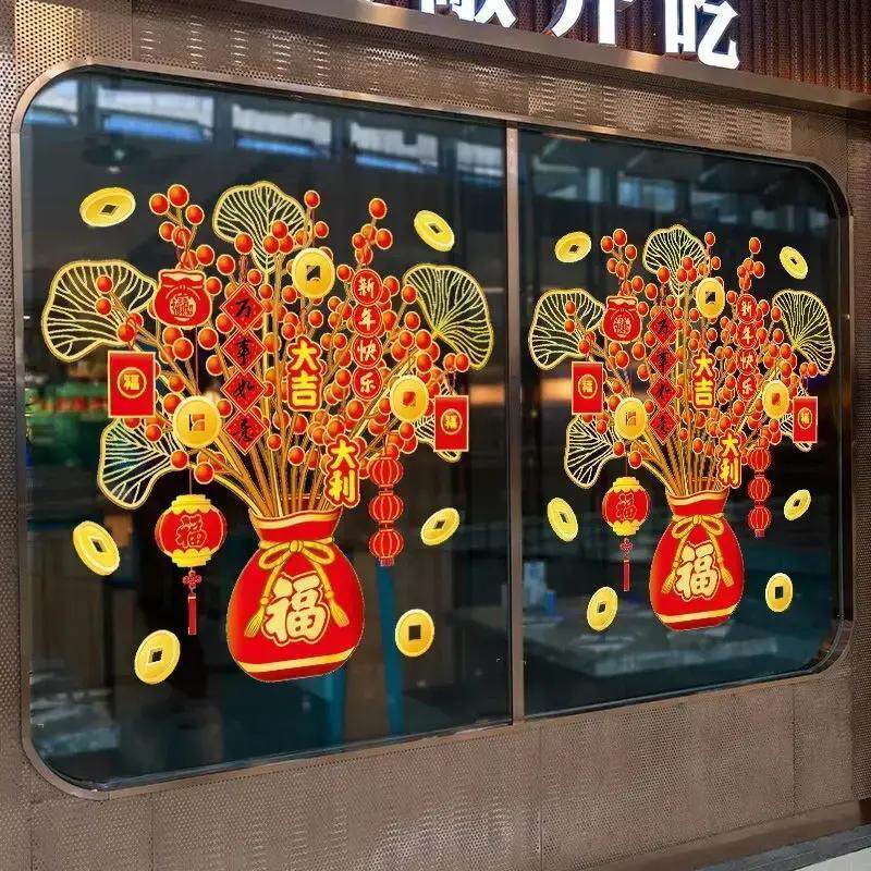 旦玻璃门贴纸中国风春节布置贴画 福字元 新年装 饰贴纸2026马年中式