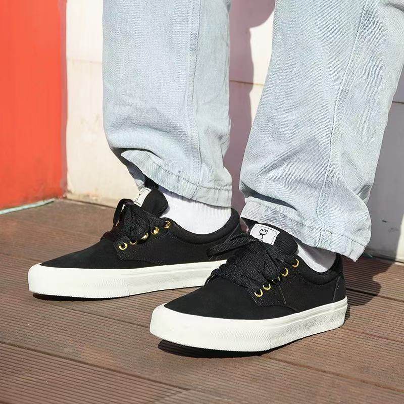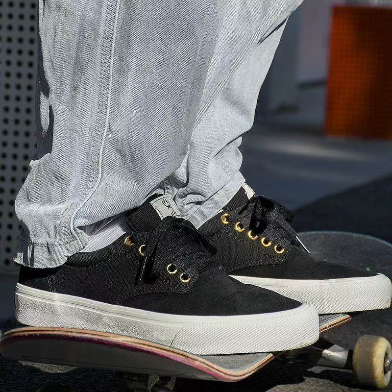 滑板鞋 耐磨减震运动低帮专业经典 板鞋 极路客弹头黑白金扣色男女款