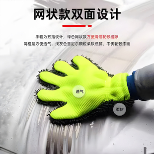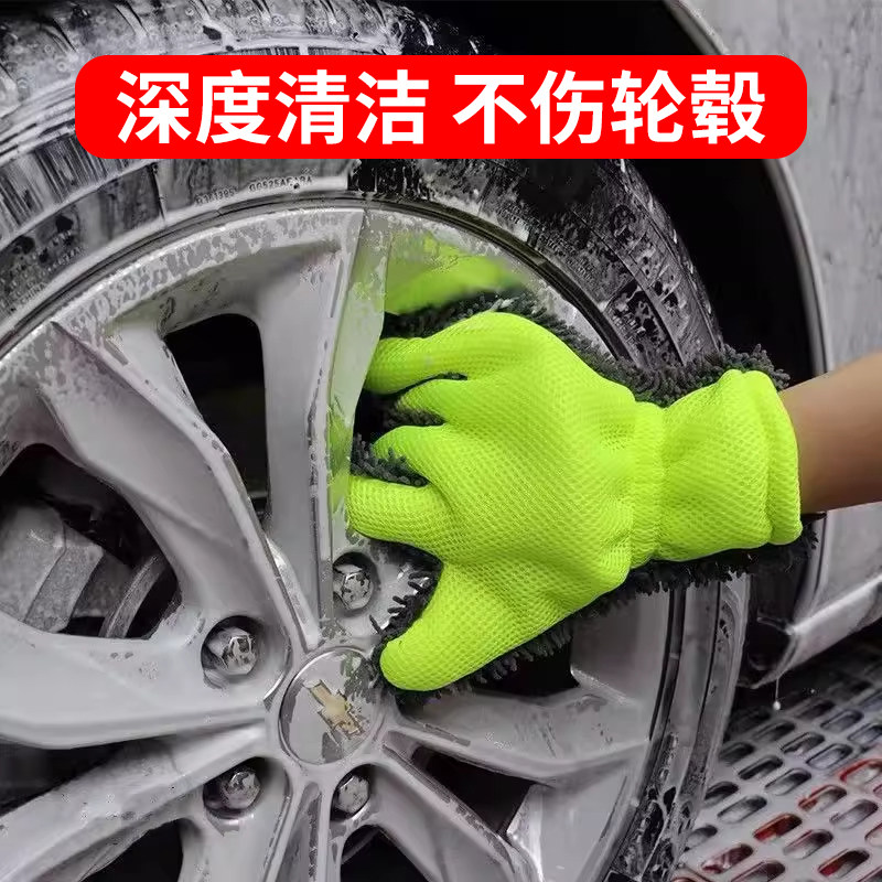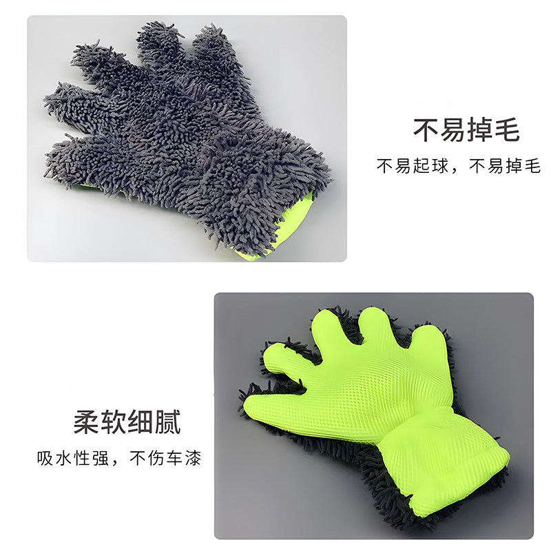 洗车手套雪尼尔珊瑚毛绒加厚双面擦车巾专用洗车抹布泡沫清洁工具
