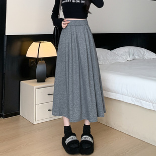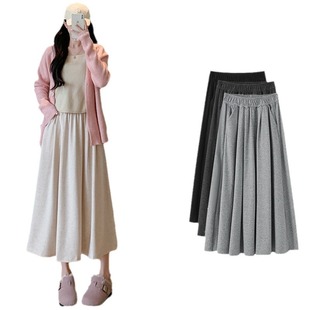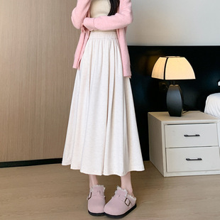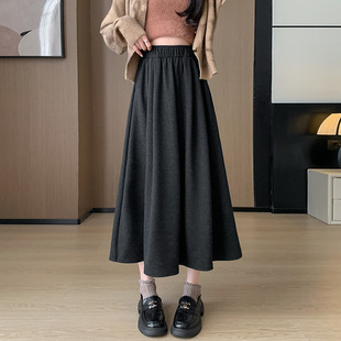 裙子 松紧腰 糯米半身裙女秋冬新款 高腰显瘦大摆中长裙纯色A字大码