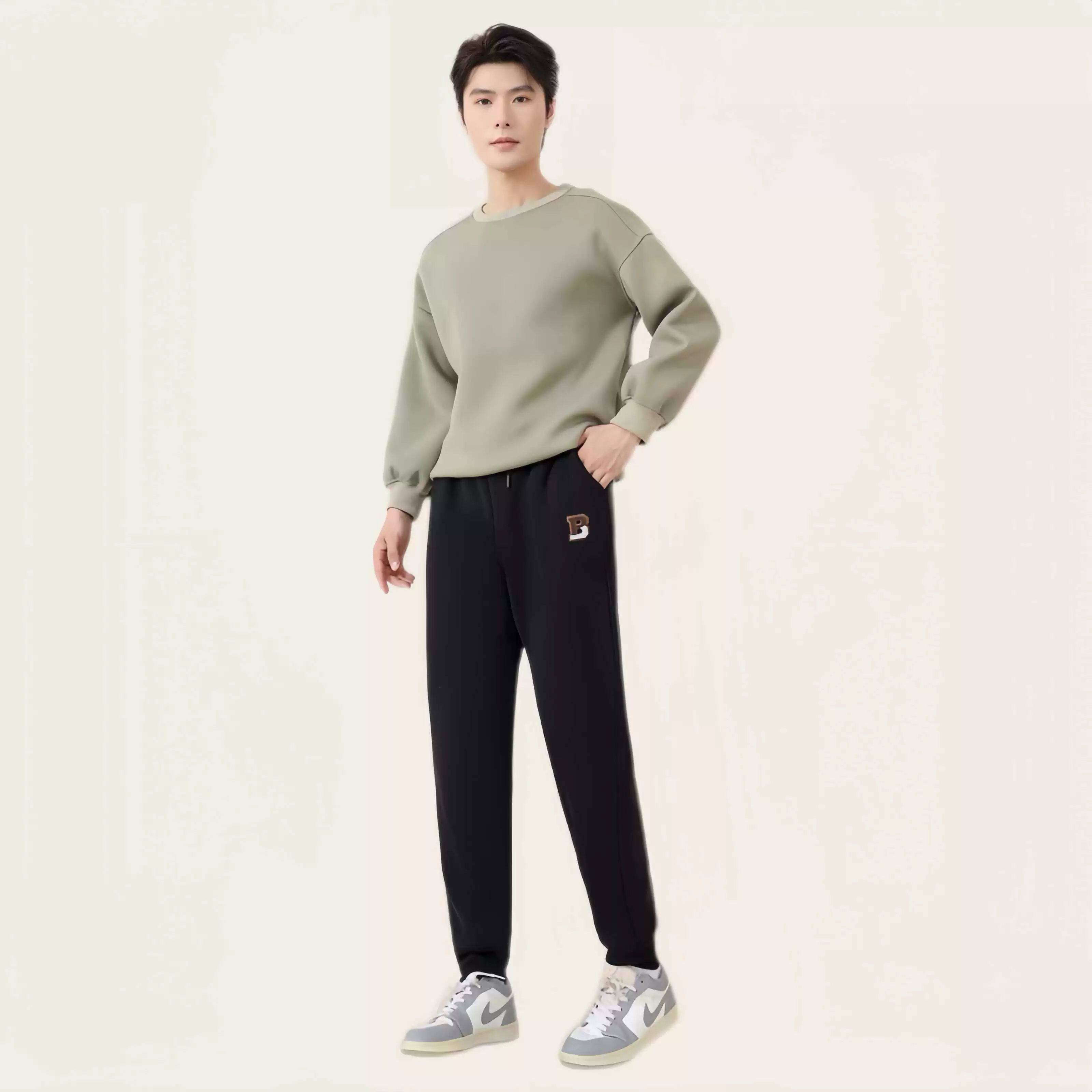 加绒胖子男加肥加大宽松休闲弯刀卫裤 黑劲大码 冬季 菱形加裆裤 男装