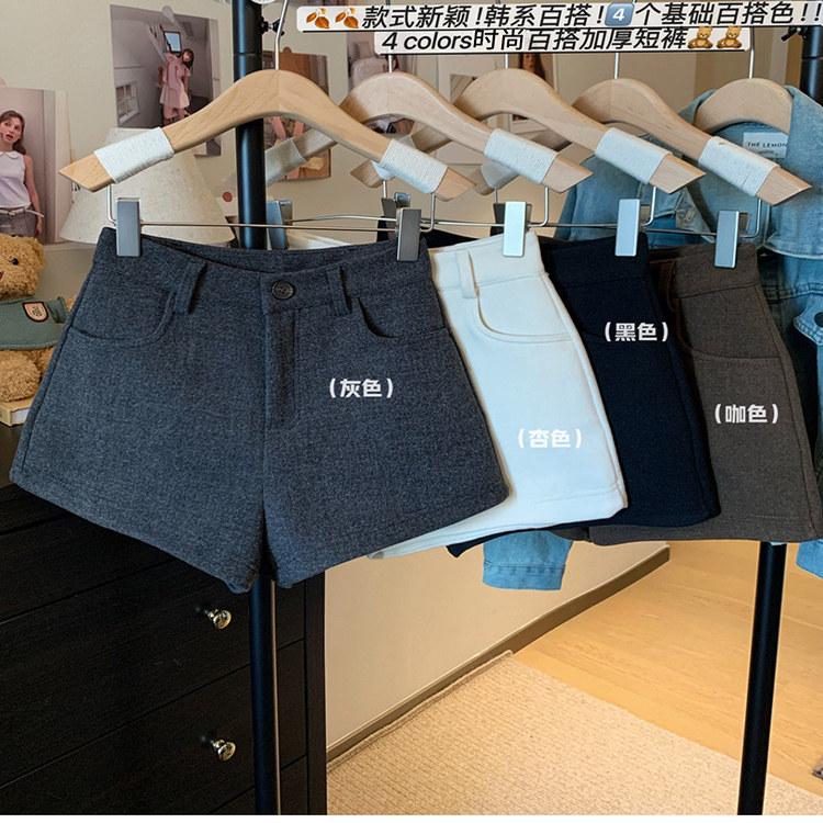 子冬加厚高腰外穿小个子a字休闲靴裤 灰色毛呢短裤 女独特超好看裤