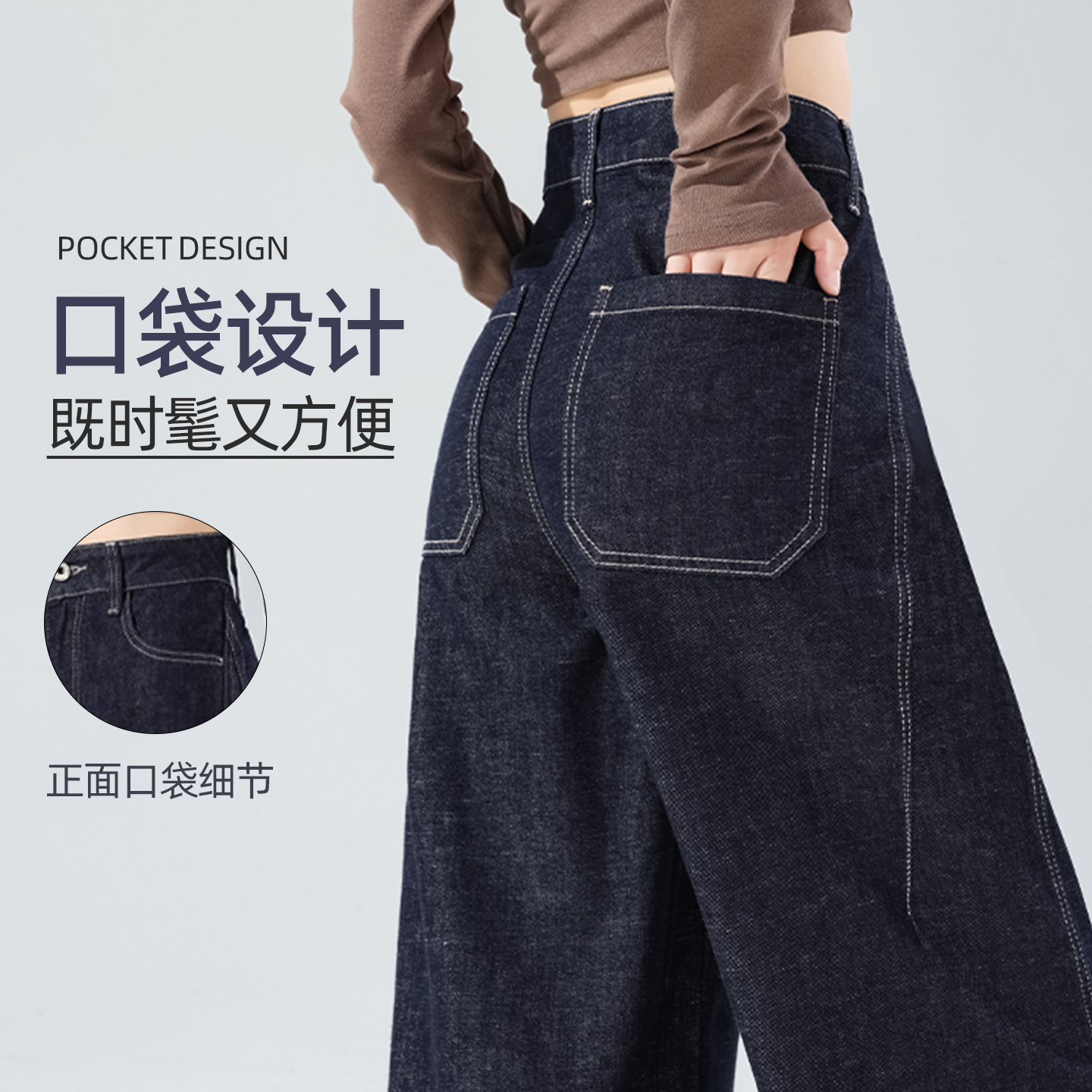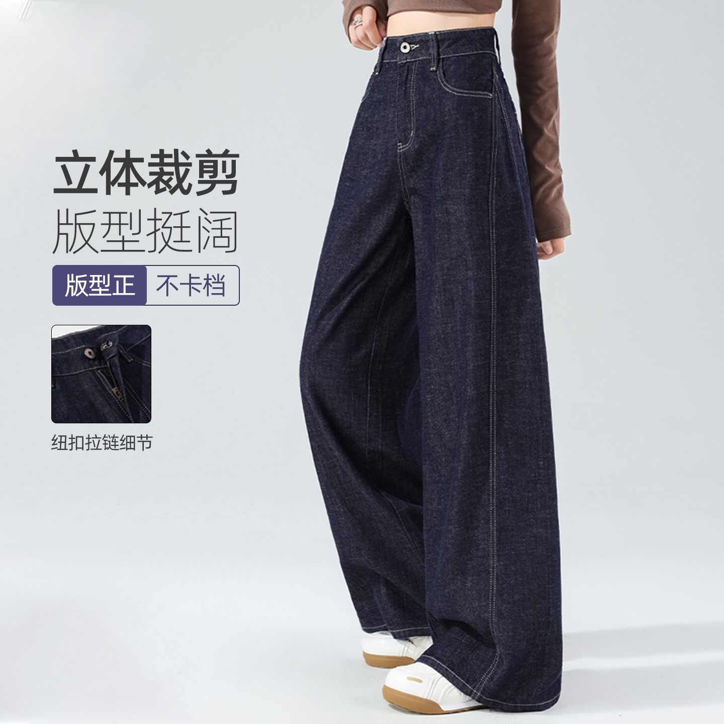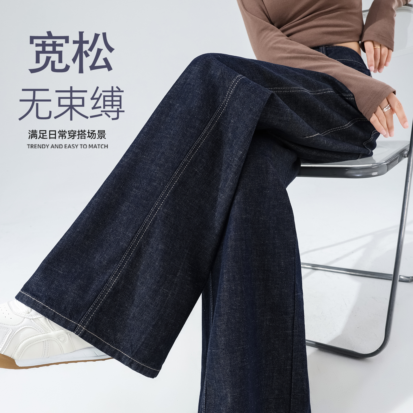 秋宽松弹力阔腿裤 双身高制版 女2025新款 直筒牛仔裤 斜裁剪阔版