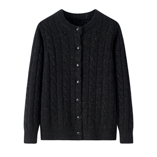 中老年女装 女圆领加厚宽松毛衣针织开衫 外套 100羊毛衫 25秋冬新款