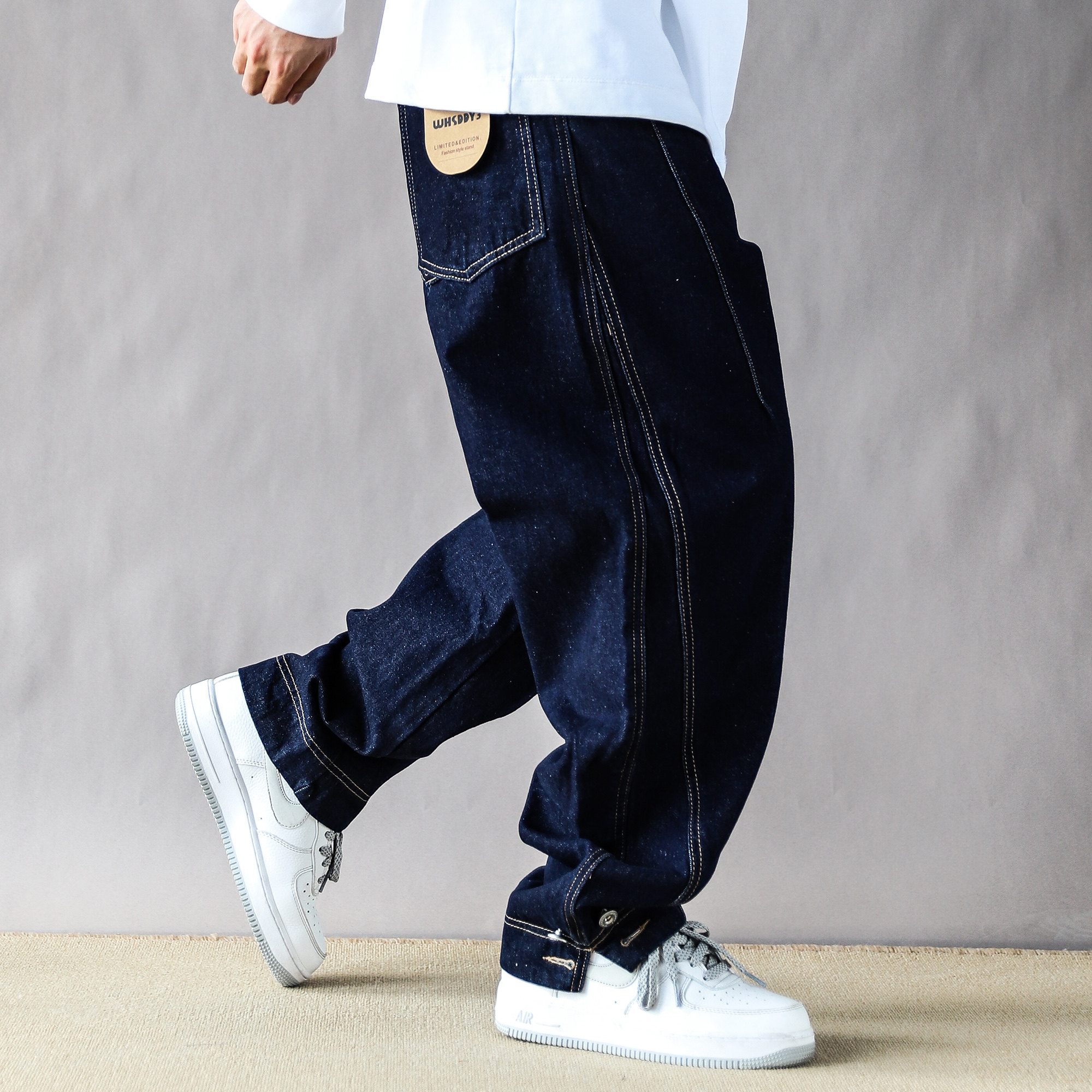复古长裤 柴米黑色伐木洗水牛仔裤 男宽松直筒美式 裤 男阿美咔叽 工装