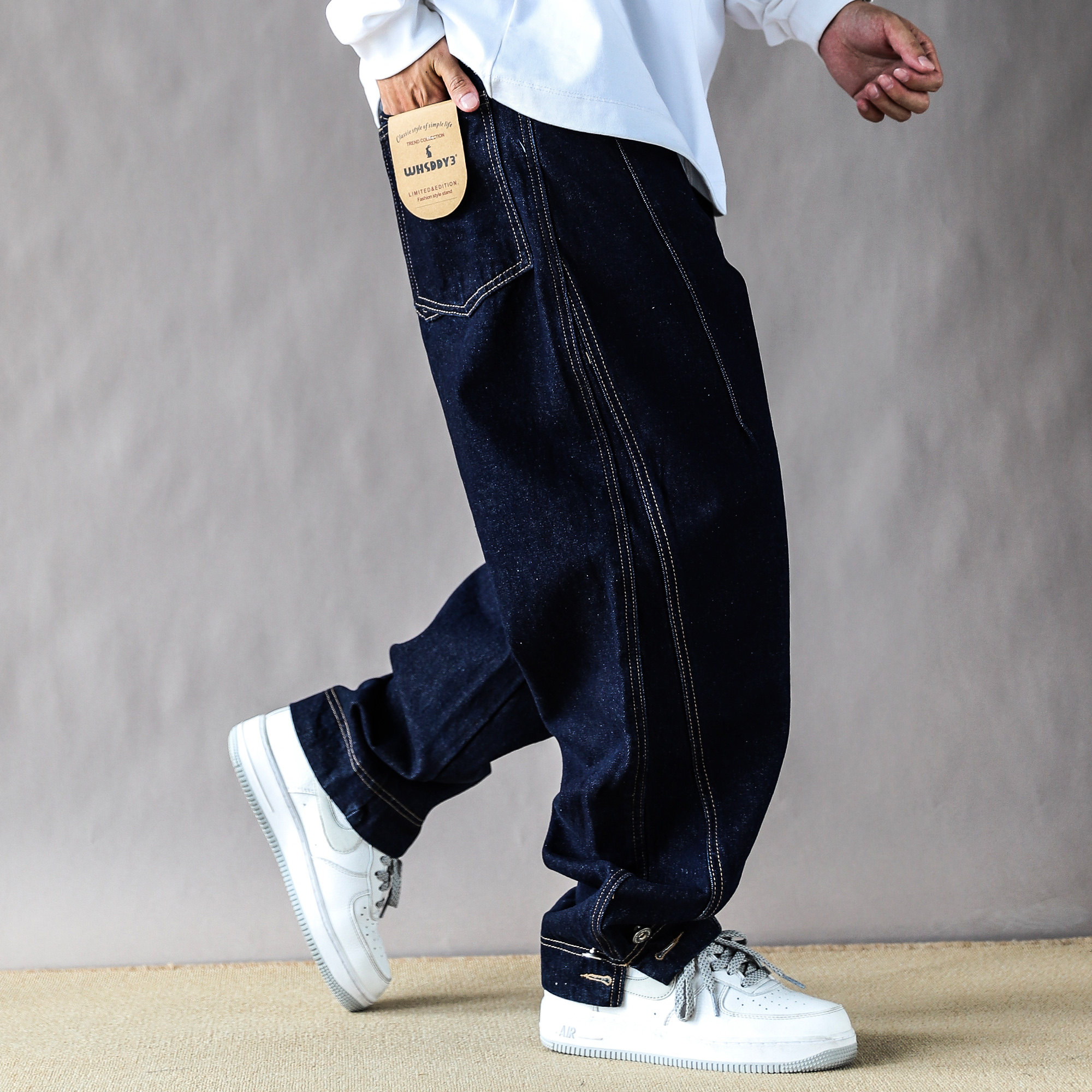 宽松阔腿加绒长裤 流石男装 男士 2025年冬季 耐磨水洗加厚保暖牛仔裤