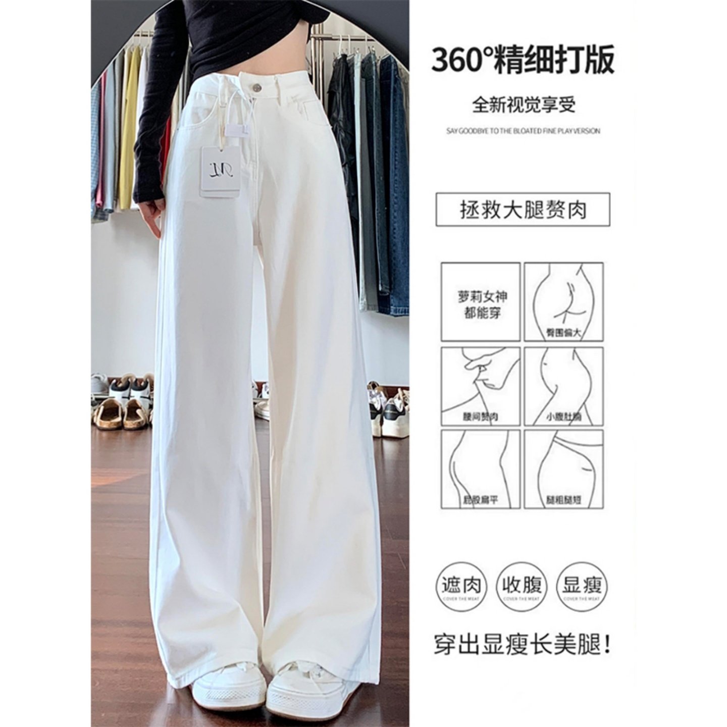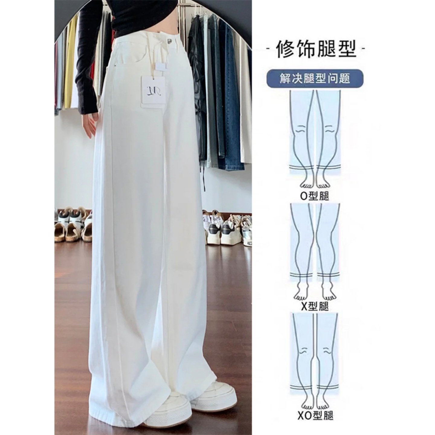 高腰宽松显瘦垂感小个子直筒拖地裤 新款 女2025夏季 白色阔腿牛仔裤