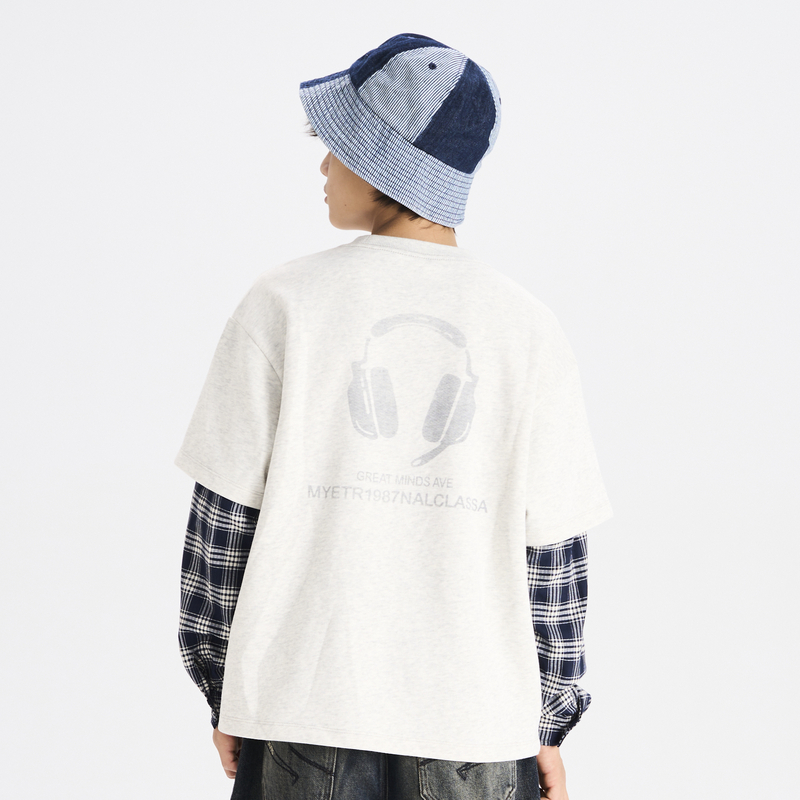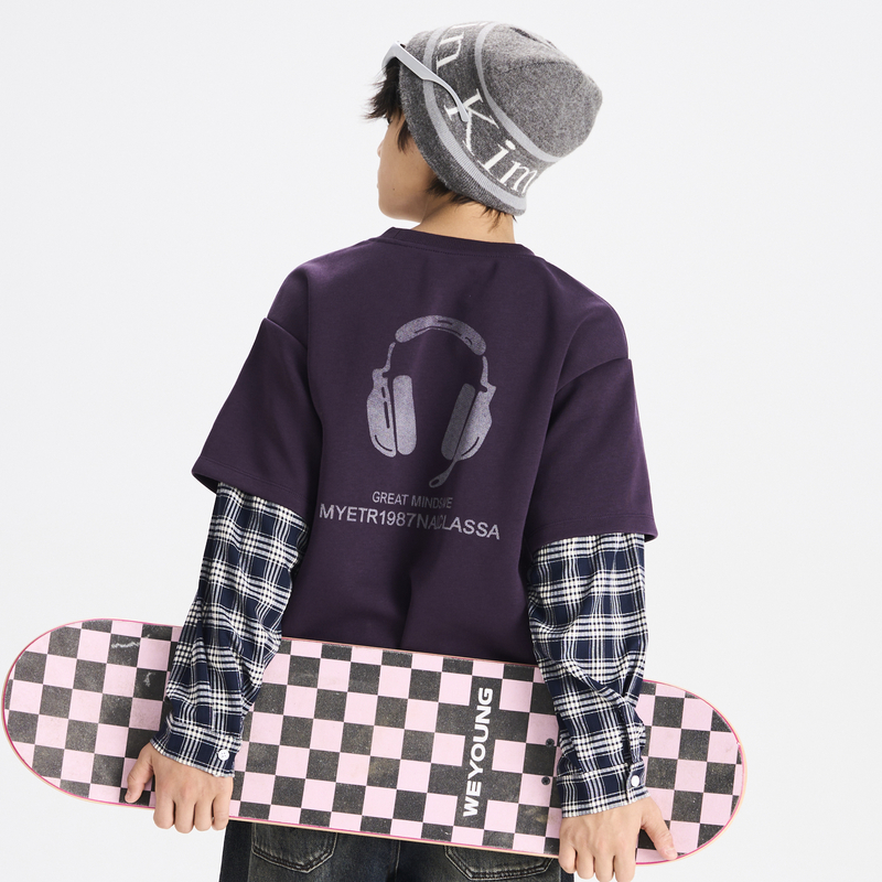 T恤男童百搭假两件长T上衣 拼接长袖 多多一上新秋款 男大童格子袖
