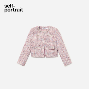 红粉混色钻链小香风粗花呢外套上衣 2025秋冬新款 self portrait