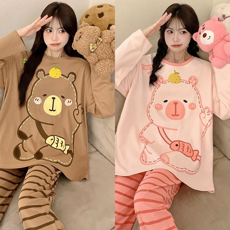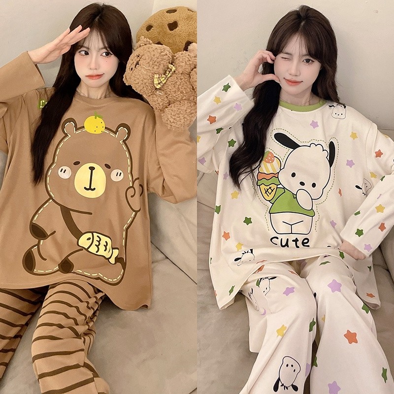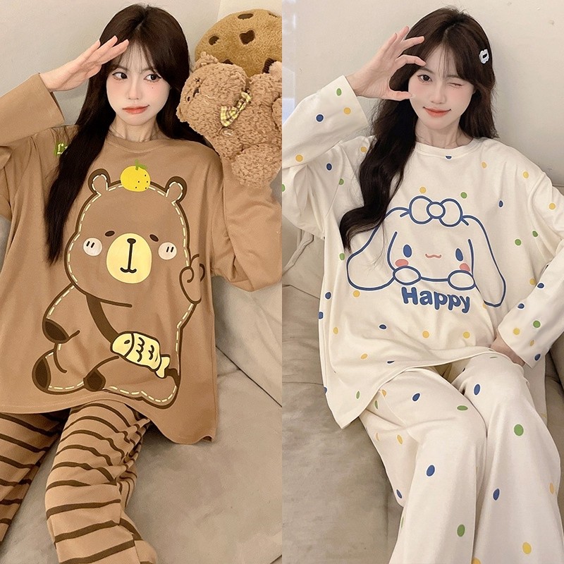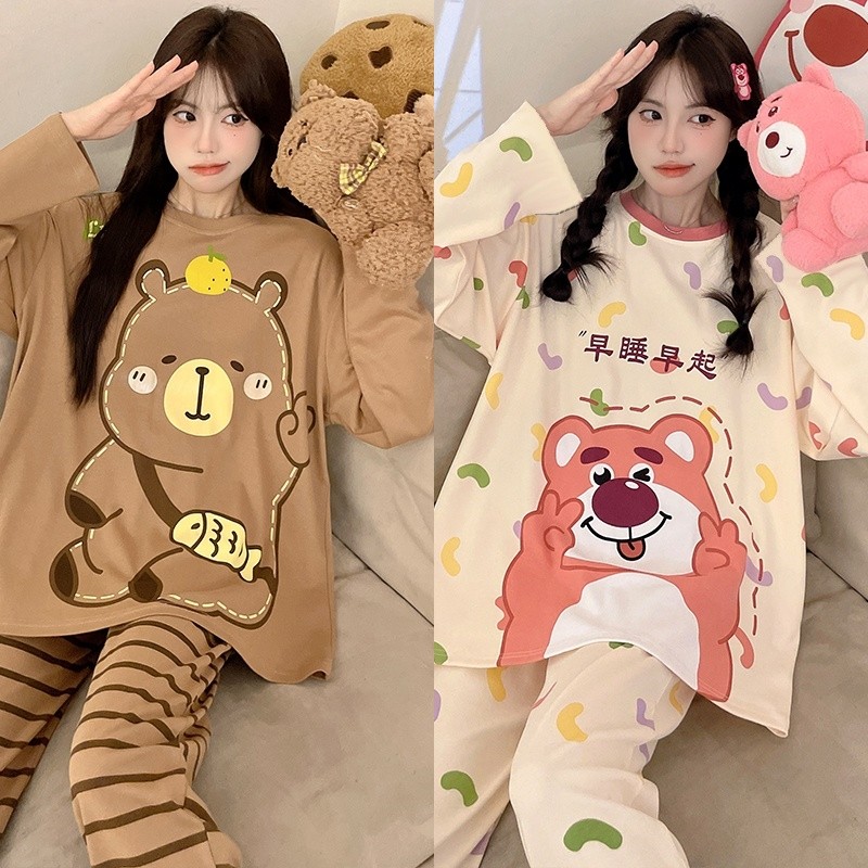 睡衣女春秋季 休闲家居服套装 纯棉长袖 甜美可爱学生大码 长裤 新款