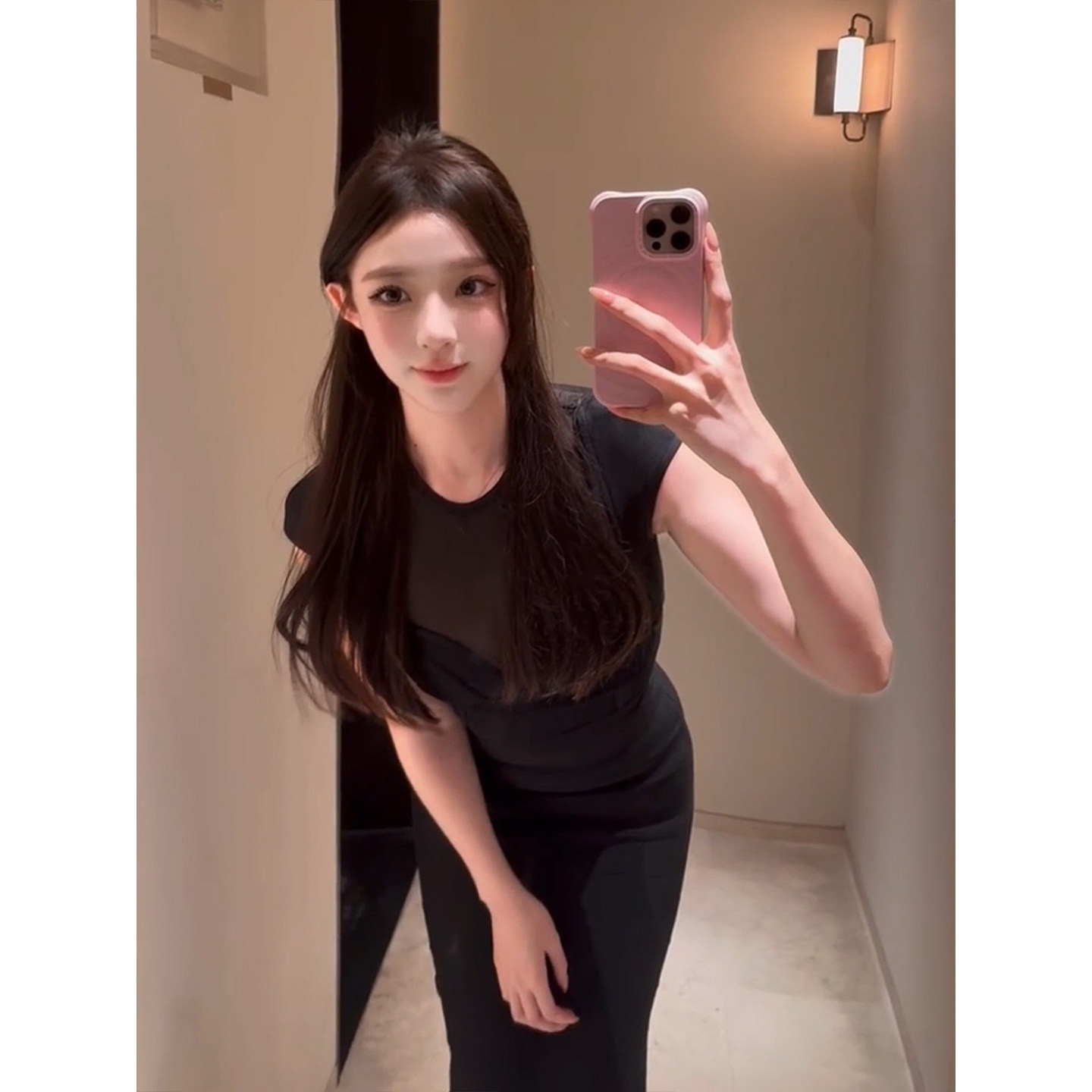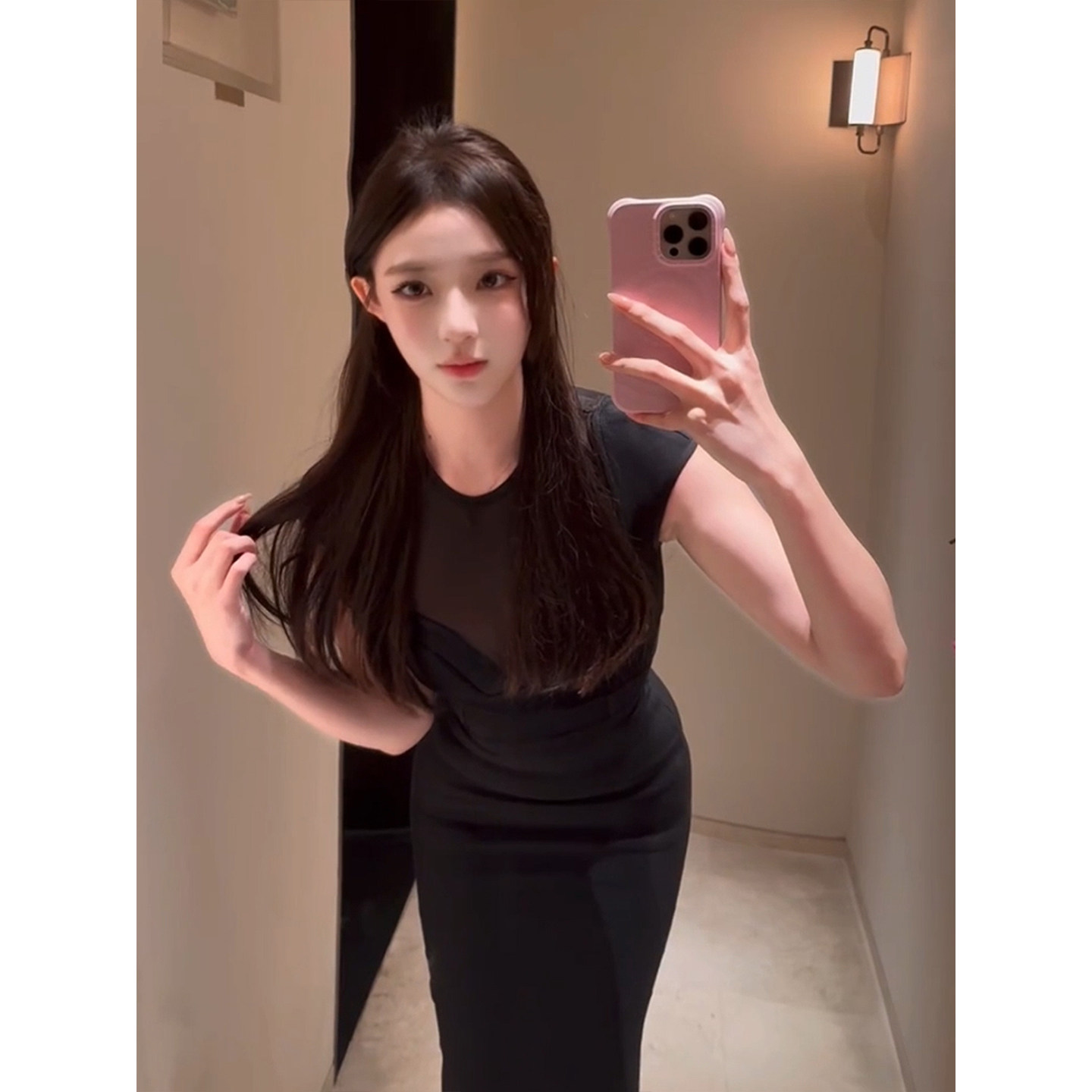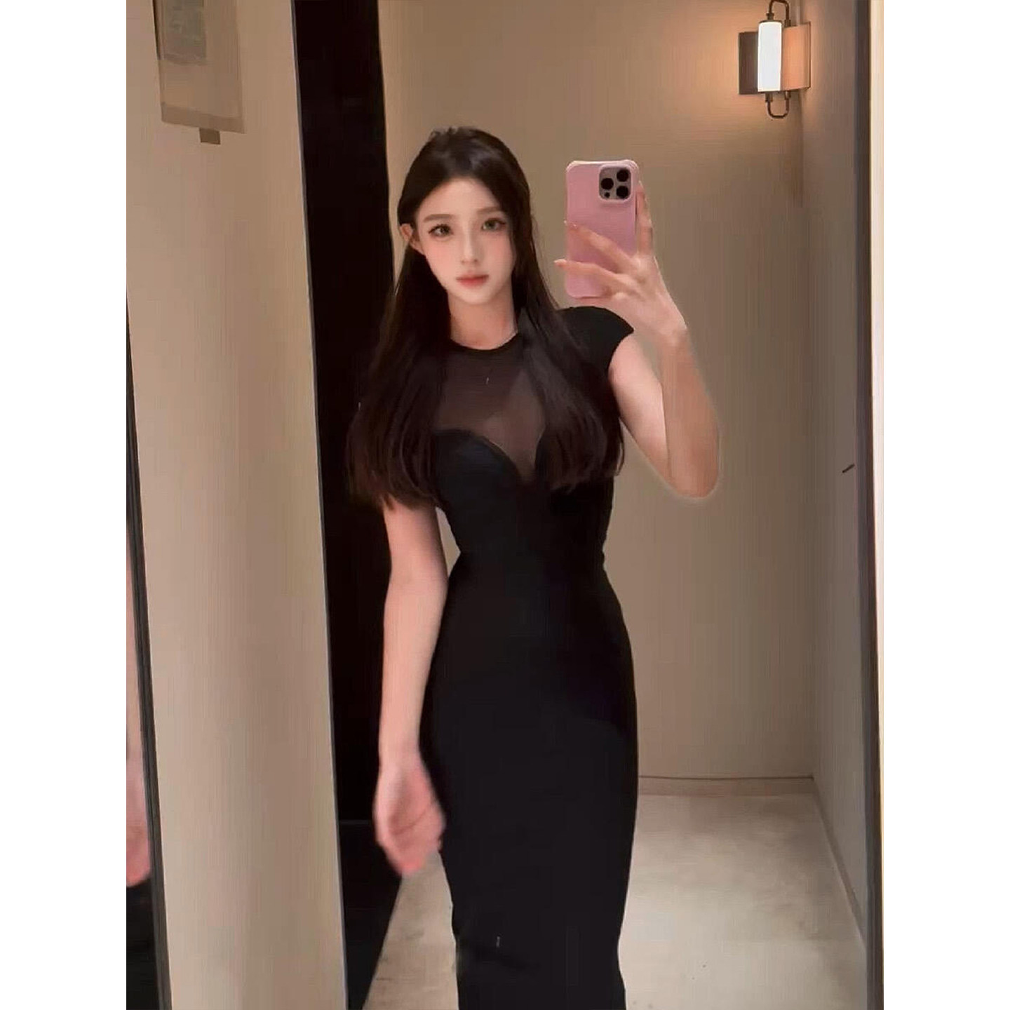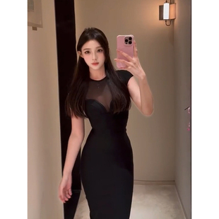 收腰显身材包臀裙 黑色网纱拼接连衣裙女26年夏季 XZY 微胖御姐修身