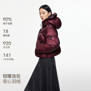 羽绒服女 90白鸭绒连帽立领抽绳短款 绫致ONLY冬季 新款