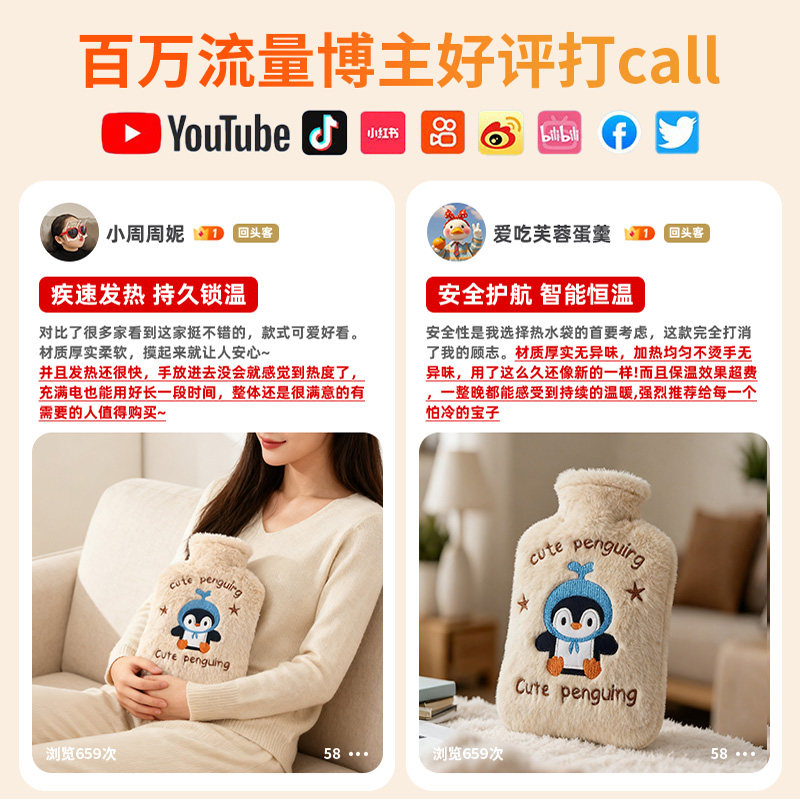 热水袋注水暖水袋热敷专用颈椎暖手暖脚被窝防爆2025新款 女生神器