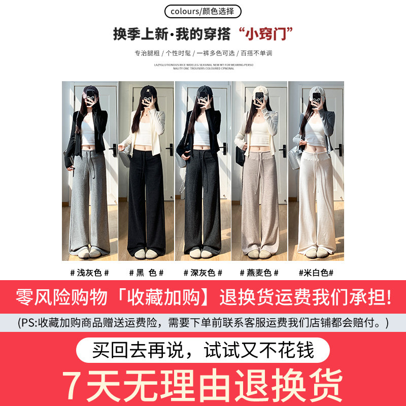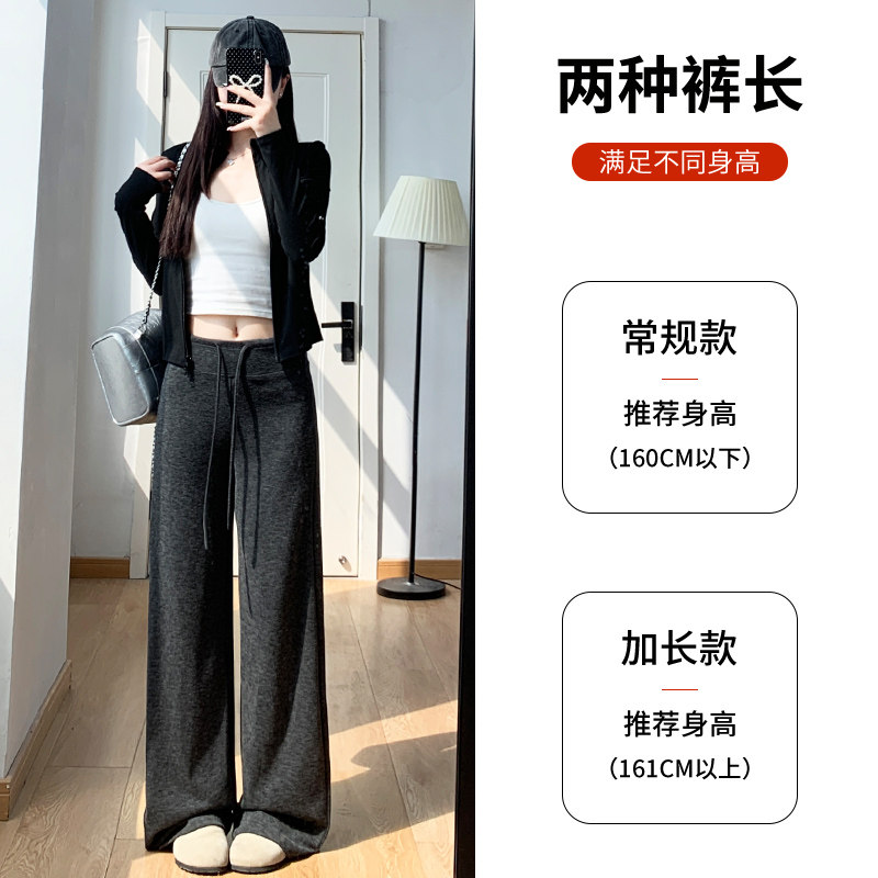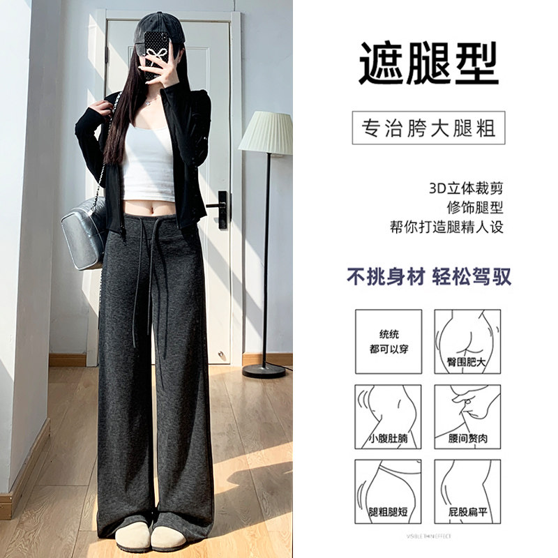 休闲直筒宽松小个子垂感松弛感阔腿裤 2025新款 女春秋季 灰色糯米裤