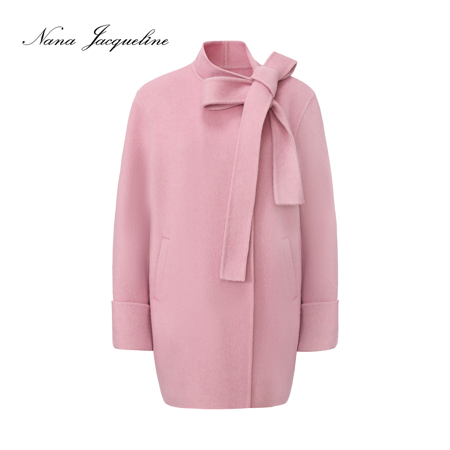 NanaJacqueline双面呢大衣女秋冬新款 羊毛兔毛桑蚕丝茧型毛呢外套