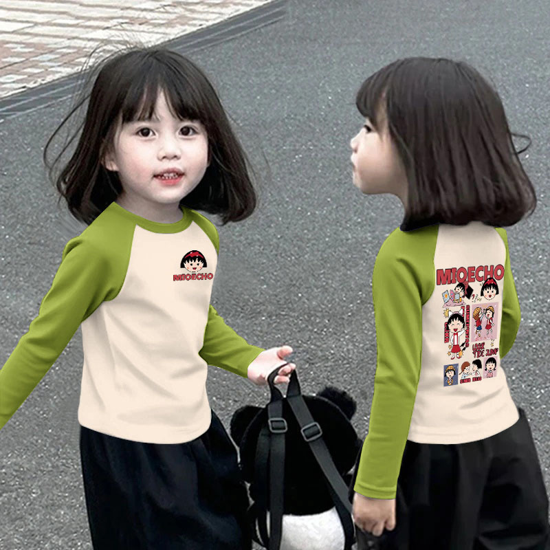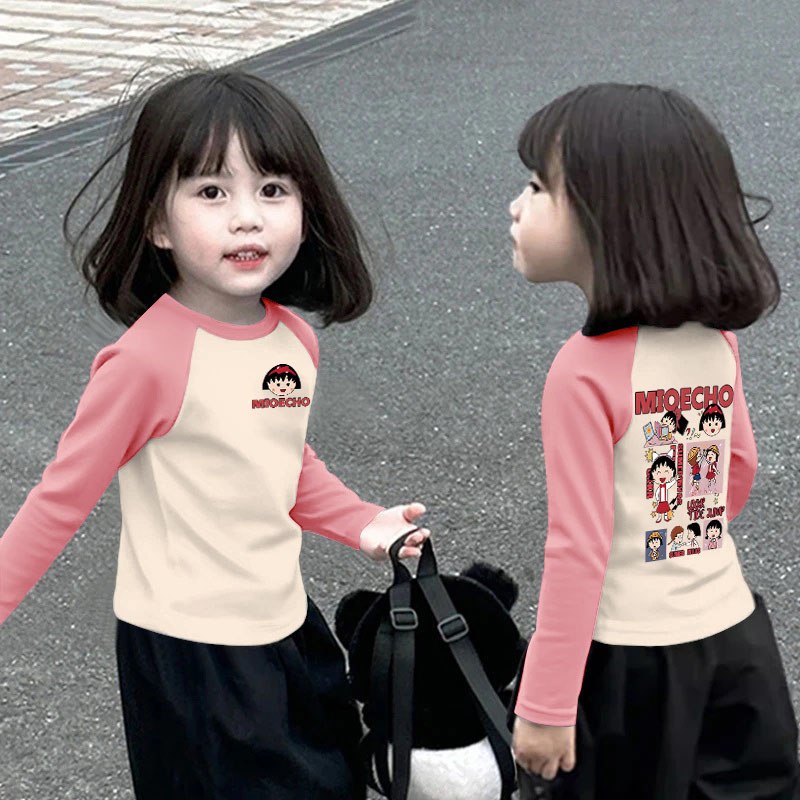 春秋宽松上衣拼接拼色女孩洋气百搭T恤 中大童长袖 女童秋装 打底衫