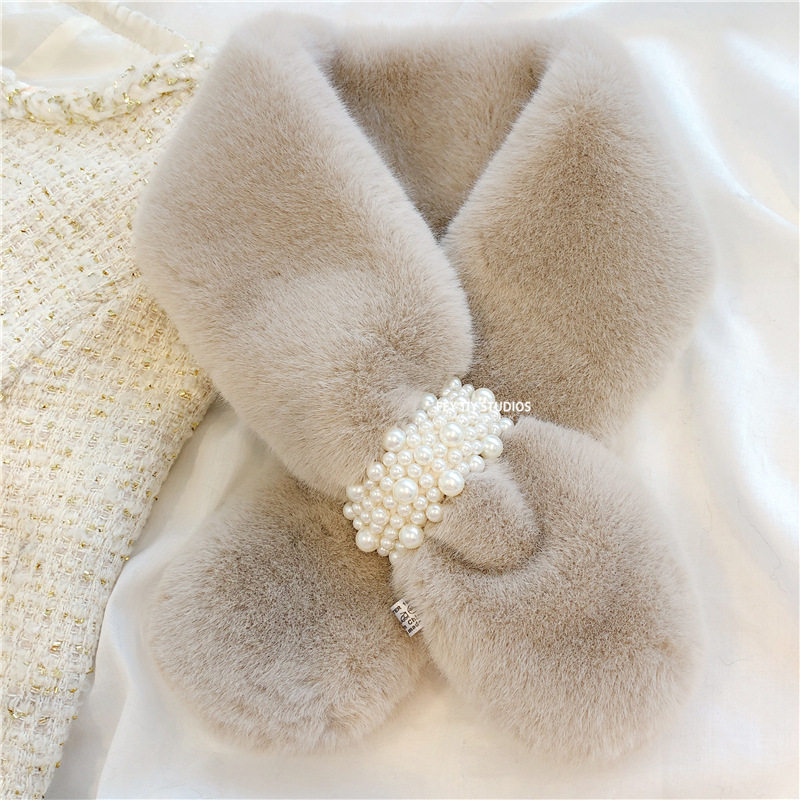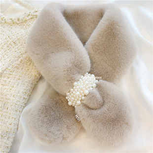 加厚保暖少女围巾秋冬情侣交叉女围脖毛绒兔毛珍珠仿濑毛10个 包邮